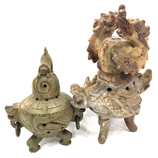 銘なし 彫刻 三つ足 香炉 置き物 香道具 茶道具 ジャンク品 含 計2点 セット 現状品 |