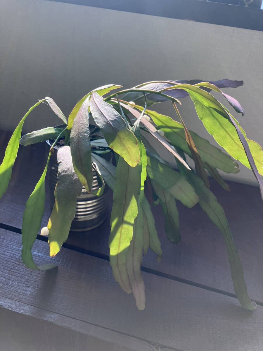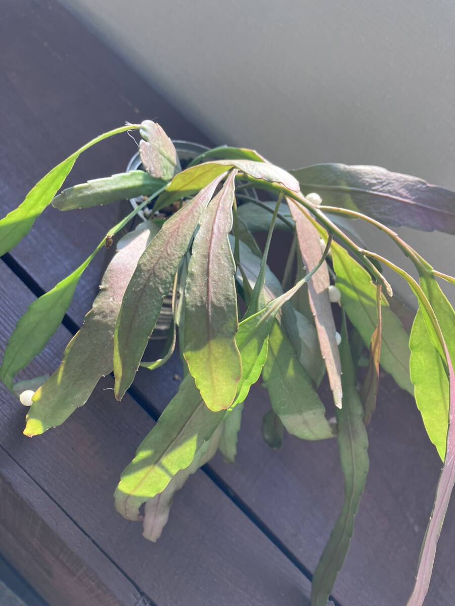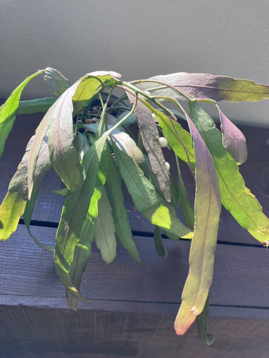 葉の周囲に花が付き、実がなる珍しいリプサリスです。