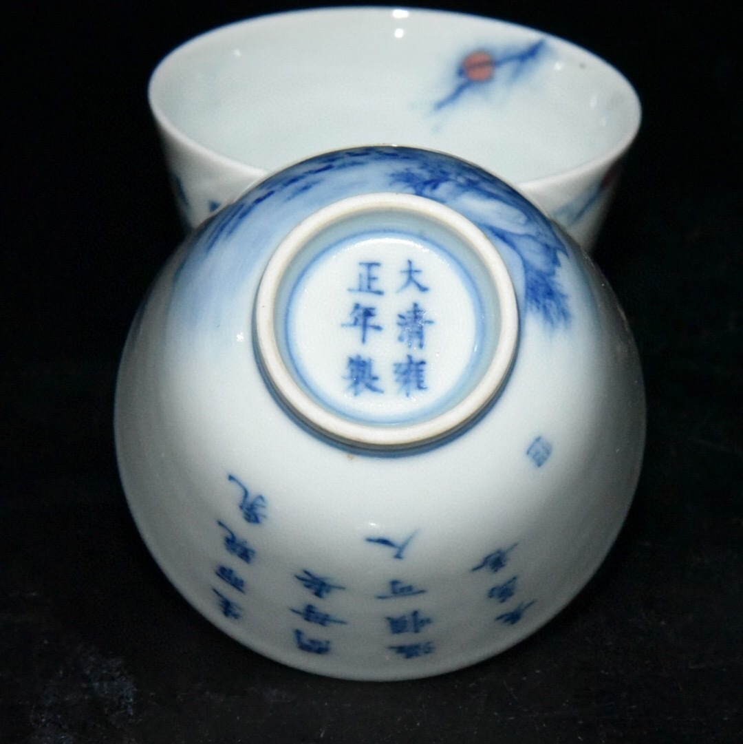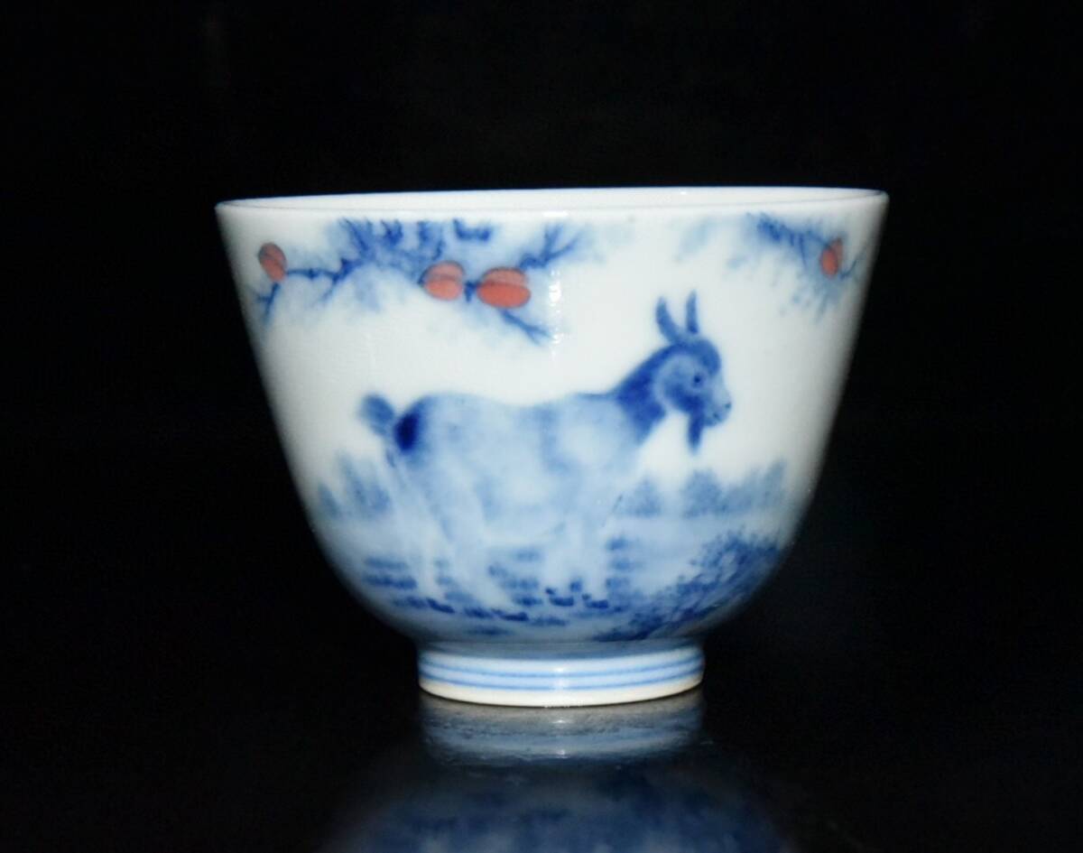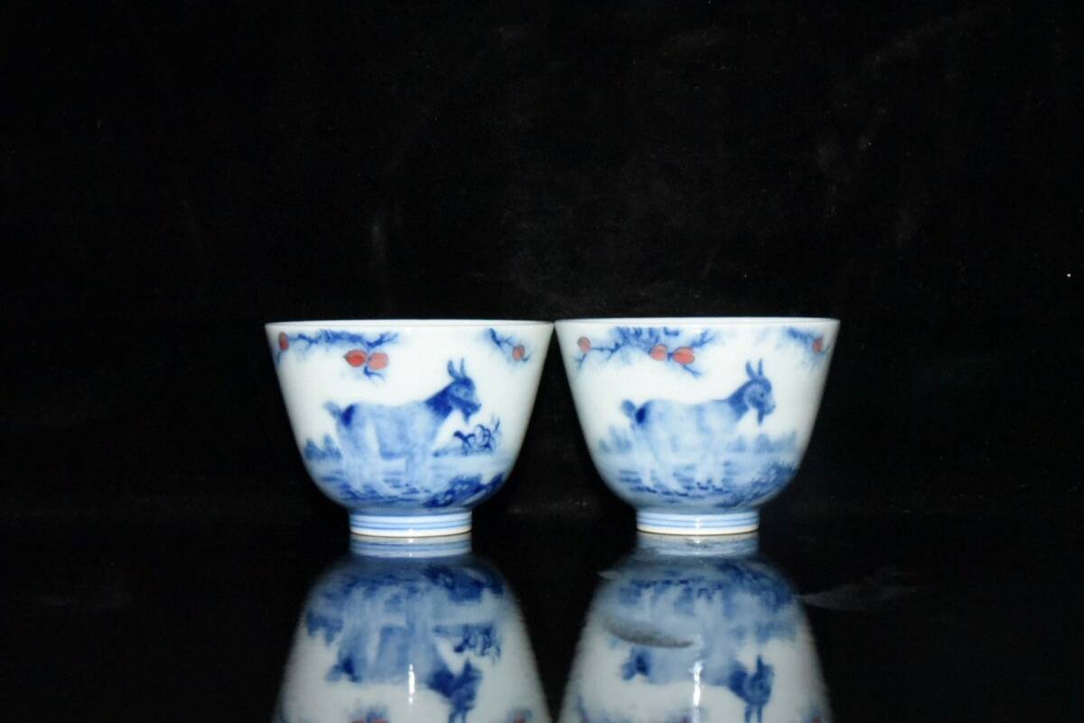 ▽鴻▽ 清 雍正年製款 古陶瓷品 青花 山羊杯一對 陶藝 古賞物 古董品 時代物 稀少珍品 中国古玩 中国古美術