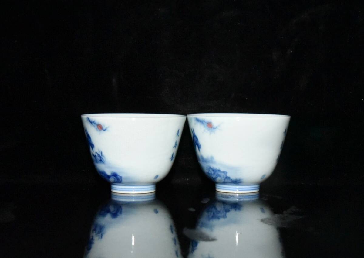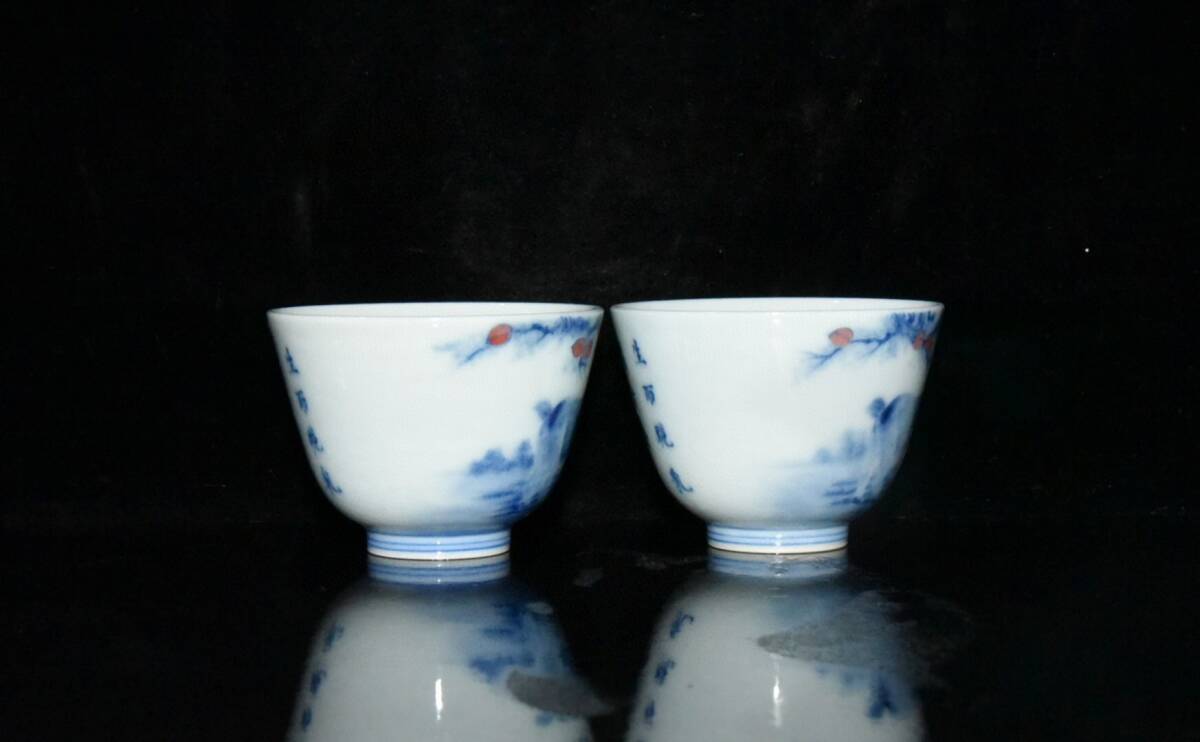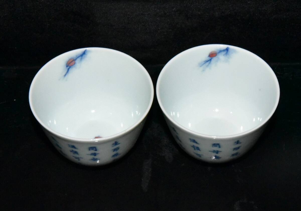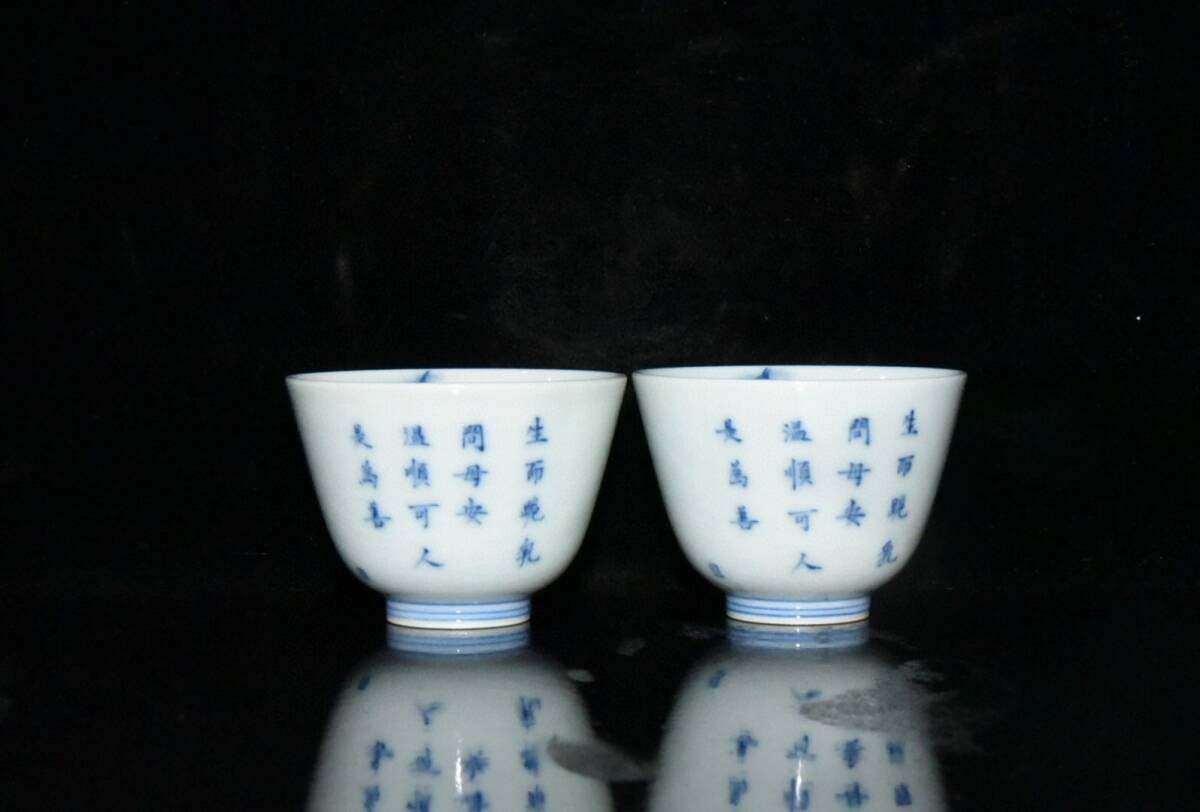 ▽鴻▽ 清 雍正年製款 古陶瓷品 青花 山羊杯一對 陶藝 古賞物 古董品 時代物 稀少珍品 中国古玩 中国古美術