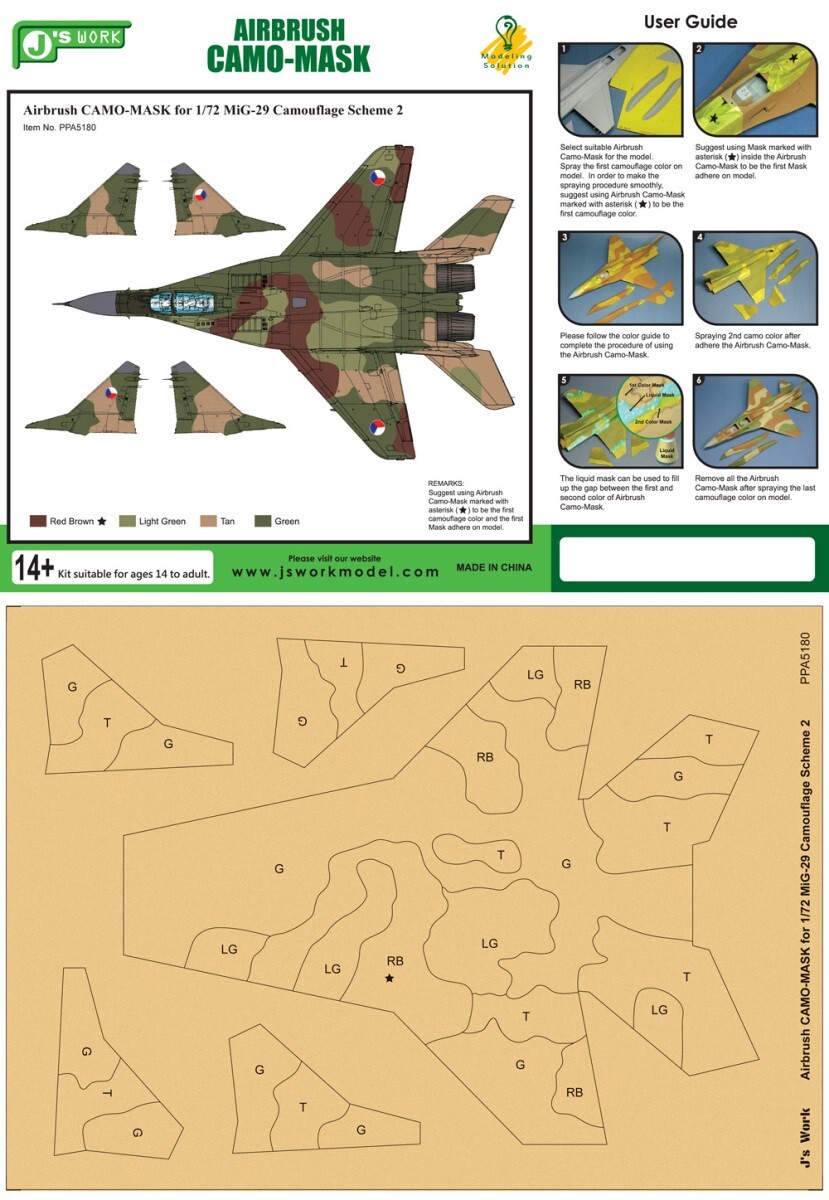 J's Work PPA5180 1/72 エアブラシ用迷彩マスキング MiG-29 カモフラージュ スキーム 2