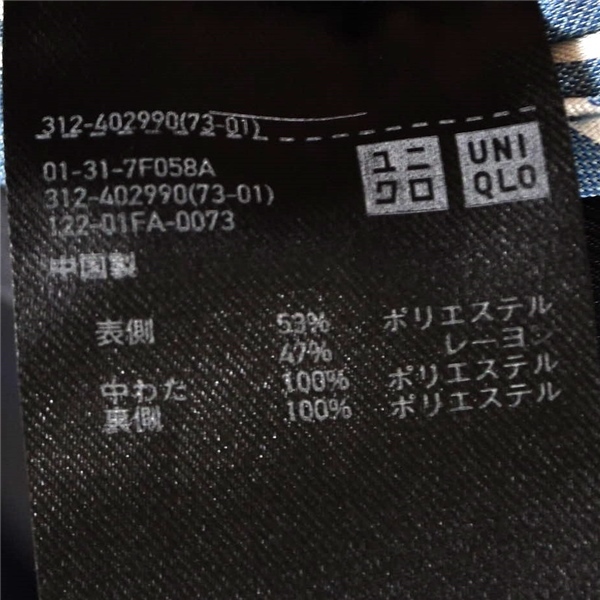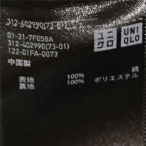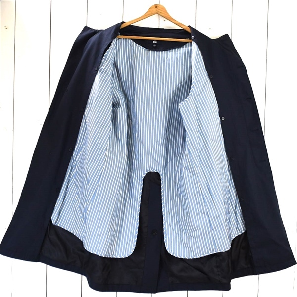 ・(株)ユニクロ。型番:312-402990。秋冬対応。コットン100%。比翼仕立て。5つボタンシングル。取り外し可能ライナー付き。センターベント。背抜き。ネーム刺繍なし。この機会に是非!