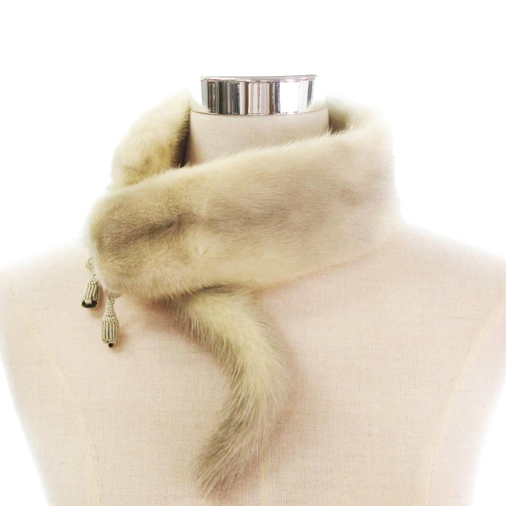 美品 ミンクファー ティペット ショール クリップ 白 ホワイト 小物 レディース