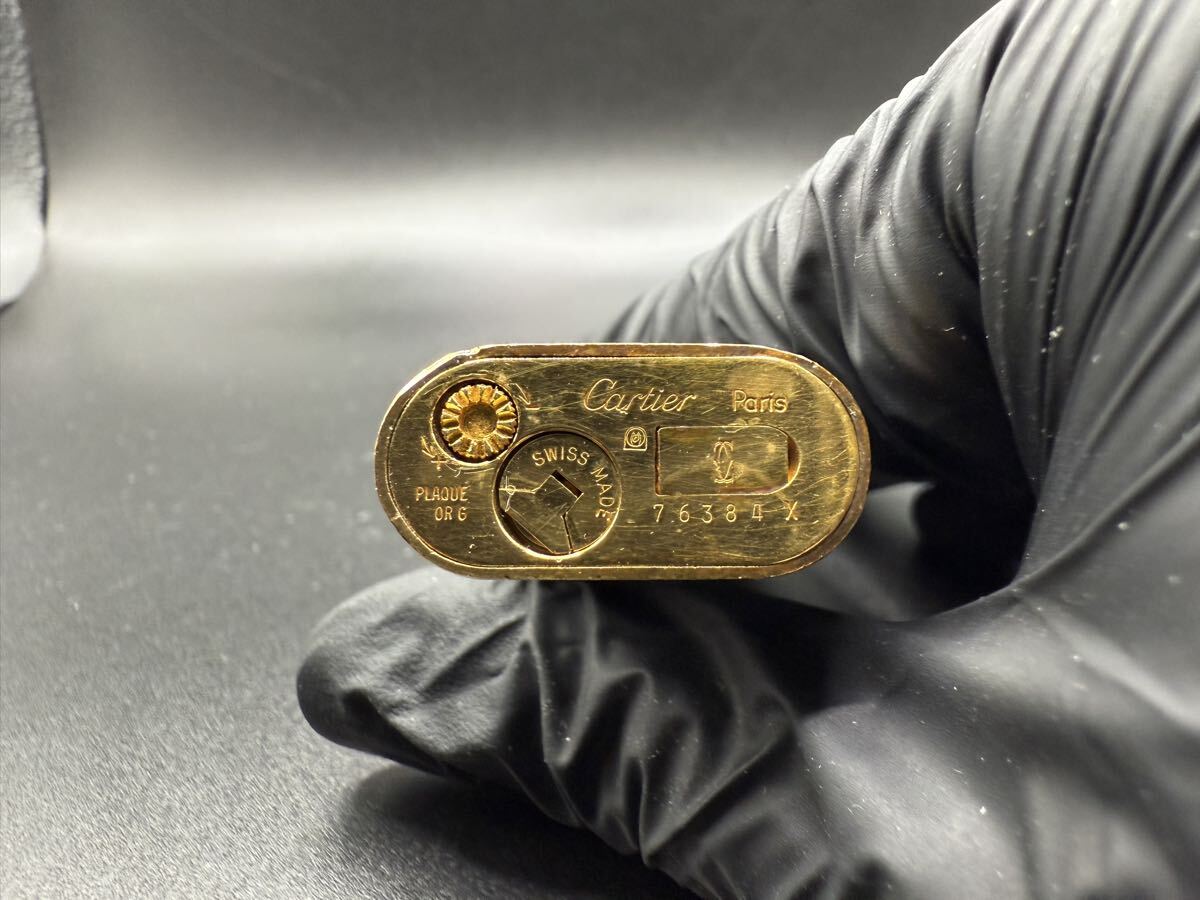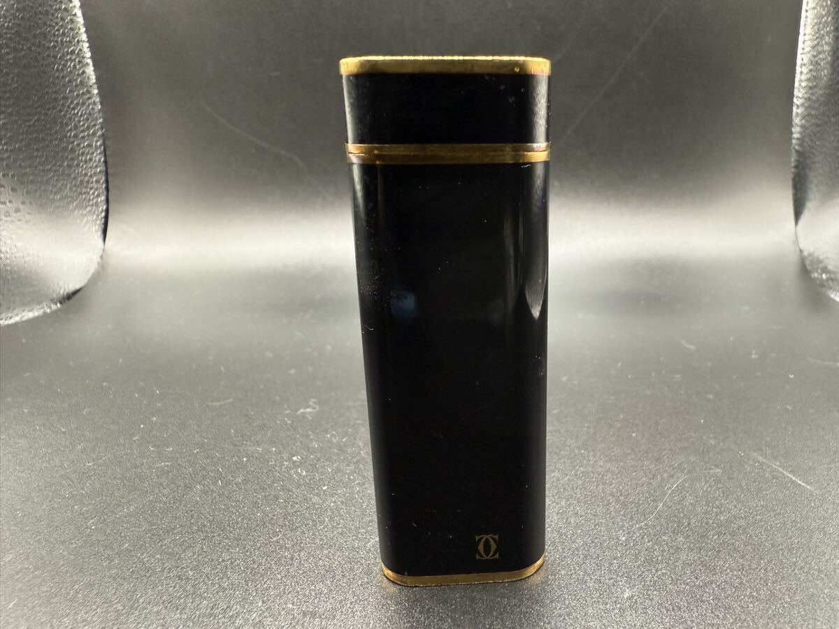 Cartier(カルティエ)のオーバル型ガスライター、ブラック×ゴールドの高級感あるデザインです。