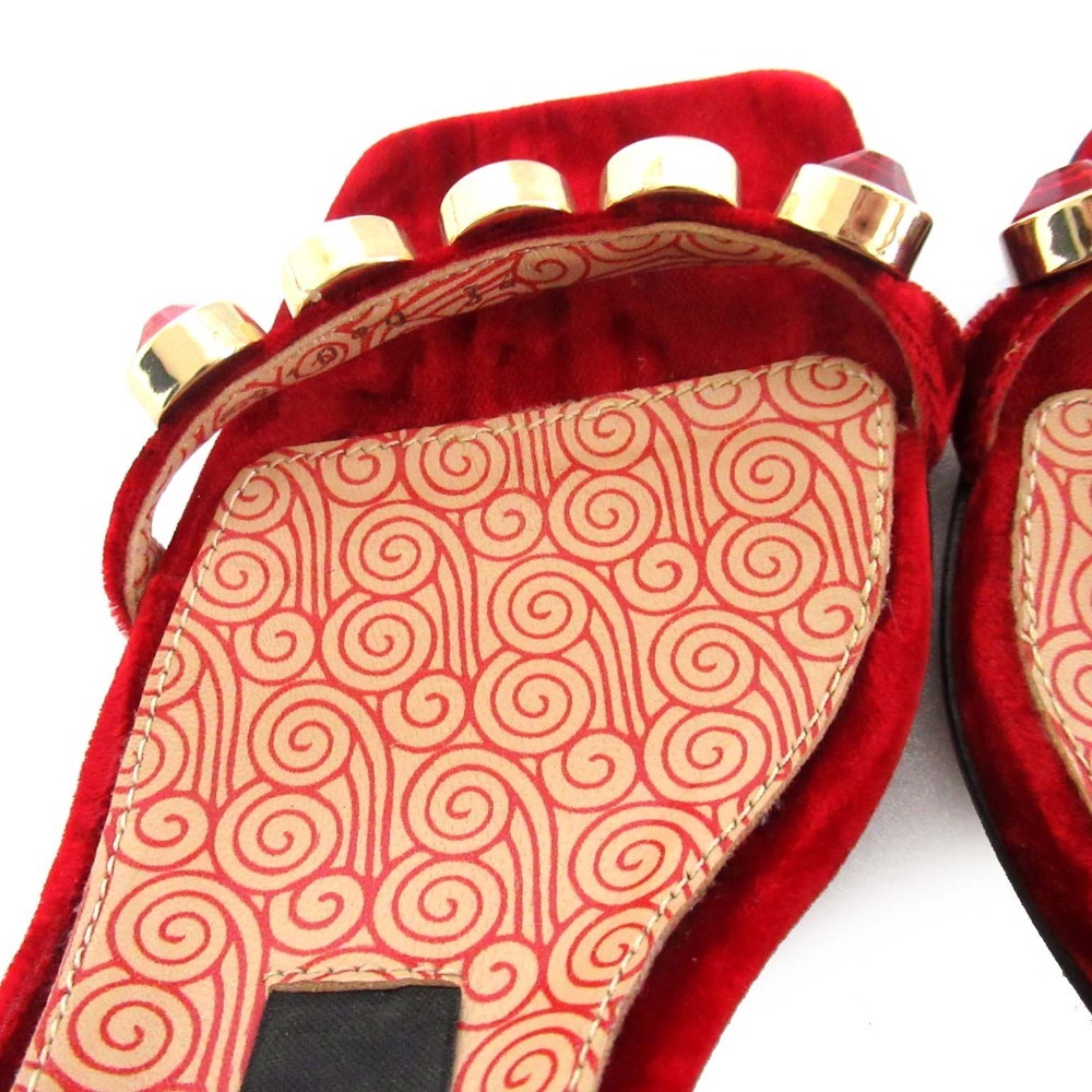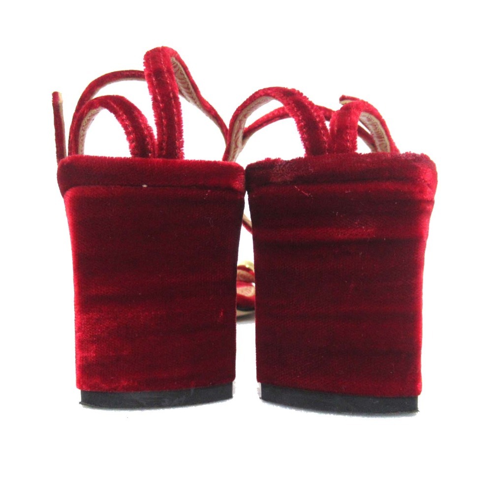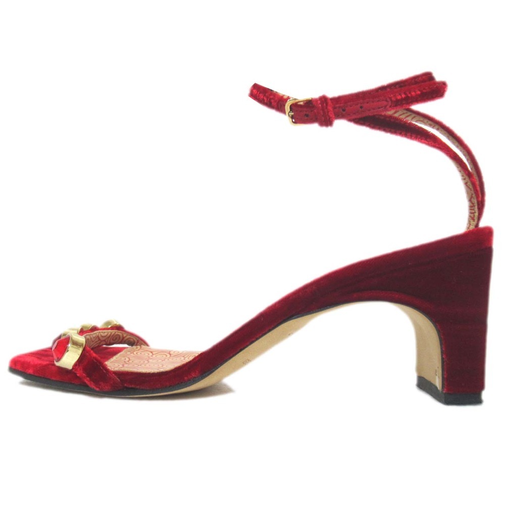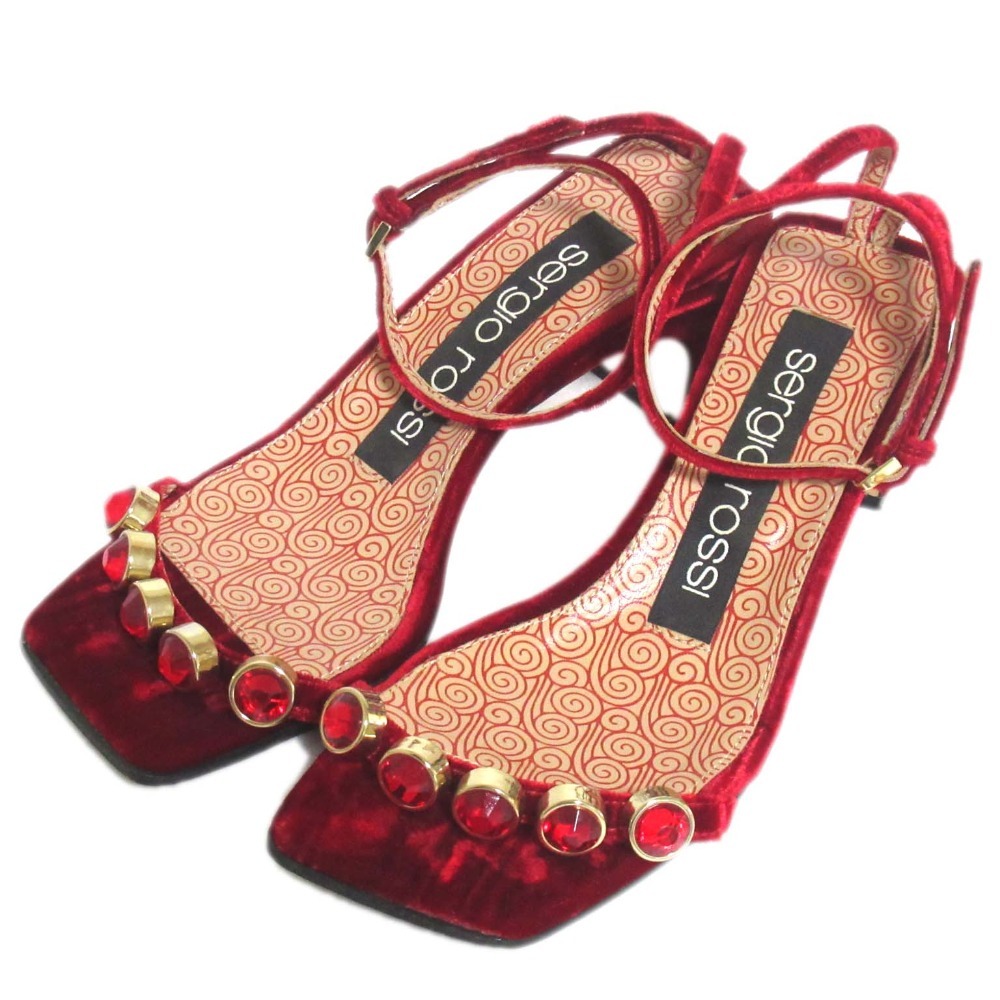 商品名:Sergio Rossi セルジオロッシ ビジュー装飾 ベロア アンクルストラップ サンダル A81090 34サイズ 21cm相当 レッド