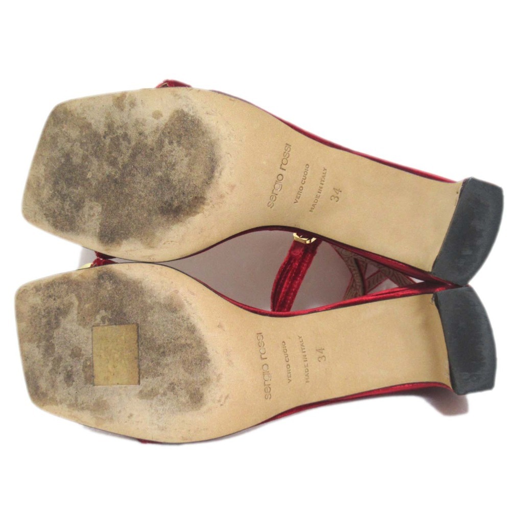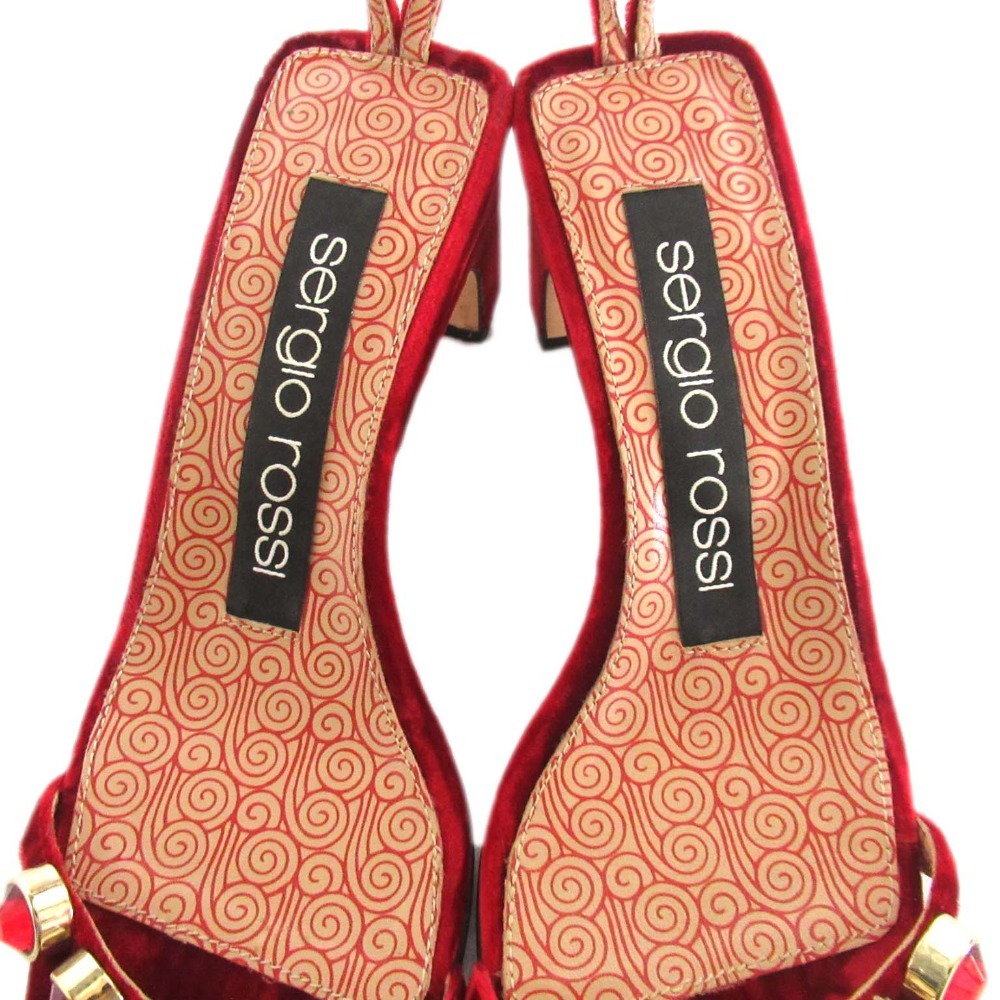 美品 Sergio Rossi セルジオロッシ ビジュー装飾 ベロア アンクルストラップ サンダル A81090 34サイズ 21cm相当 レッド