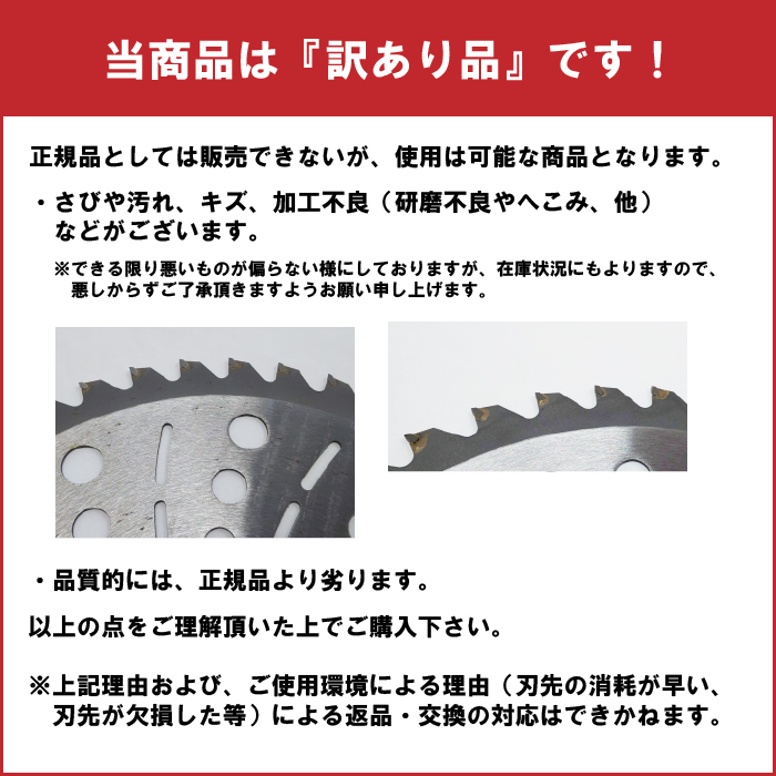 ※ 汚れやさび、キズ、加工不良、チップ欠損などがありますが、使用上の問題はございません。処分品ということでご理解頂ける方のみご