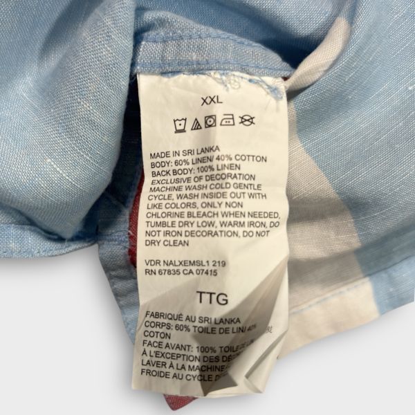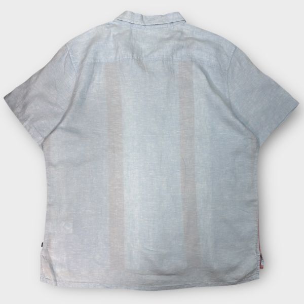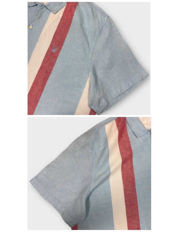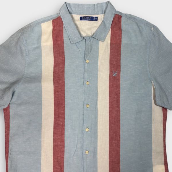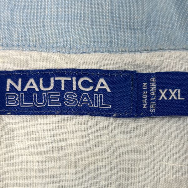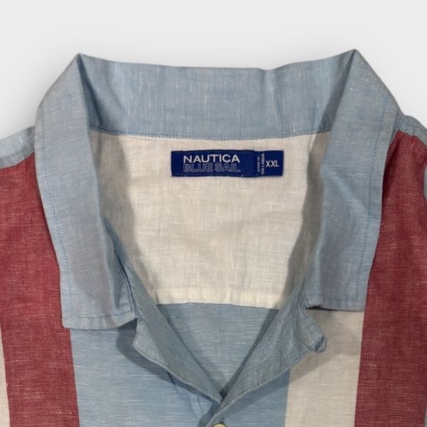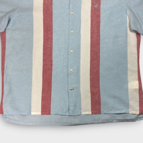 ★リネン混★NAUTICA 半袖シャツ マルチカラー ロゴ刺繍 sizeXXL スリット ノーティカ 古着 クリーニング プレス済み 718