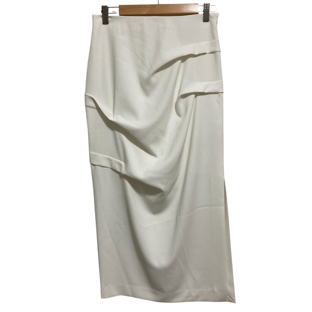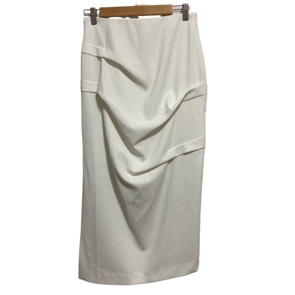 商品名:BARNEYS NEWYORK バーニーズニューヨーク ウォッシャブル サイドスリット ドレープデザインタイトスカート 38 ホワイト