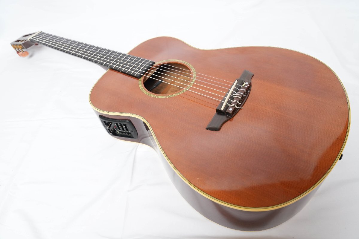 アンダーサドル式のピエゾピックアップにボディー内部に仕込まれたコンデンサーマイクの音をブレンダーで混ぜるハイブリッドスタイルでナチュラルなアコースティックサウンドをライン出力可能です。