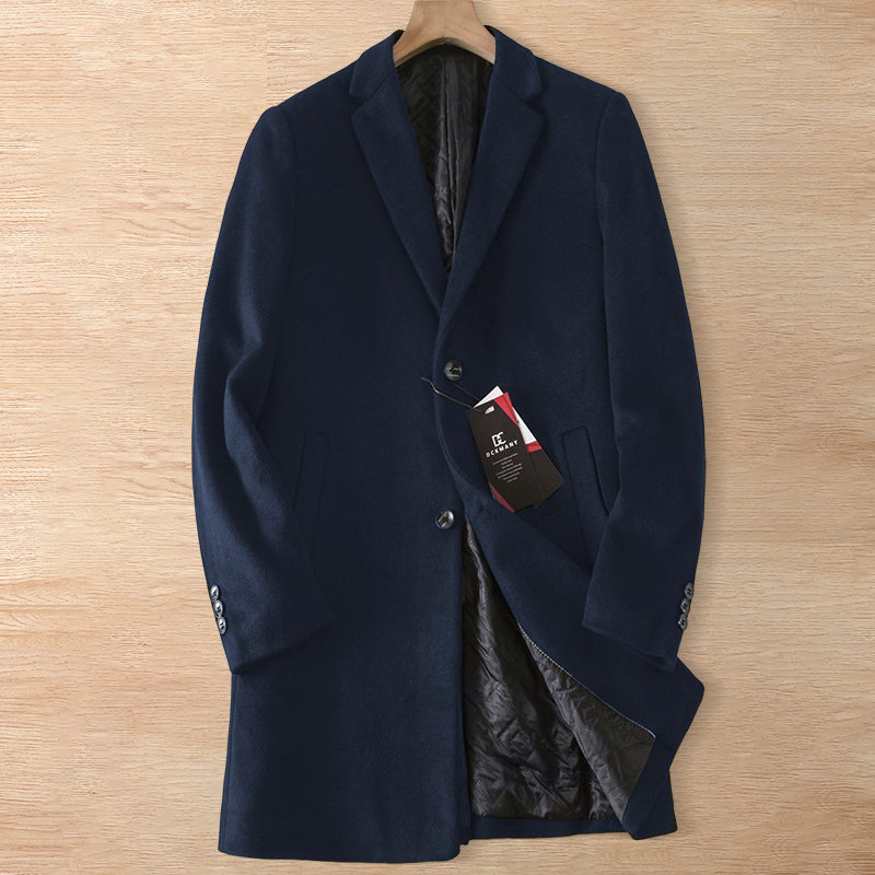 Y684-XL程度 ネイビー 新品DCKMANY ウール混 テーラードコート チェスターコート ミドル 中綿 秋冬 防寒 フォーマル アウター メンズ