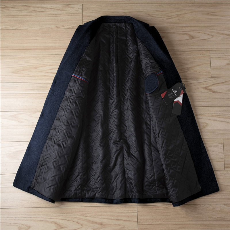 Y684-XL程度 ネイビー 新品DCKMANY ウール混 テーラードコート チェスターコート ミドル 中綿 秋冬 防寒 フォーマル アウター メンズ