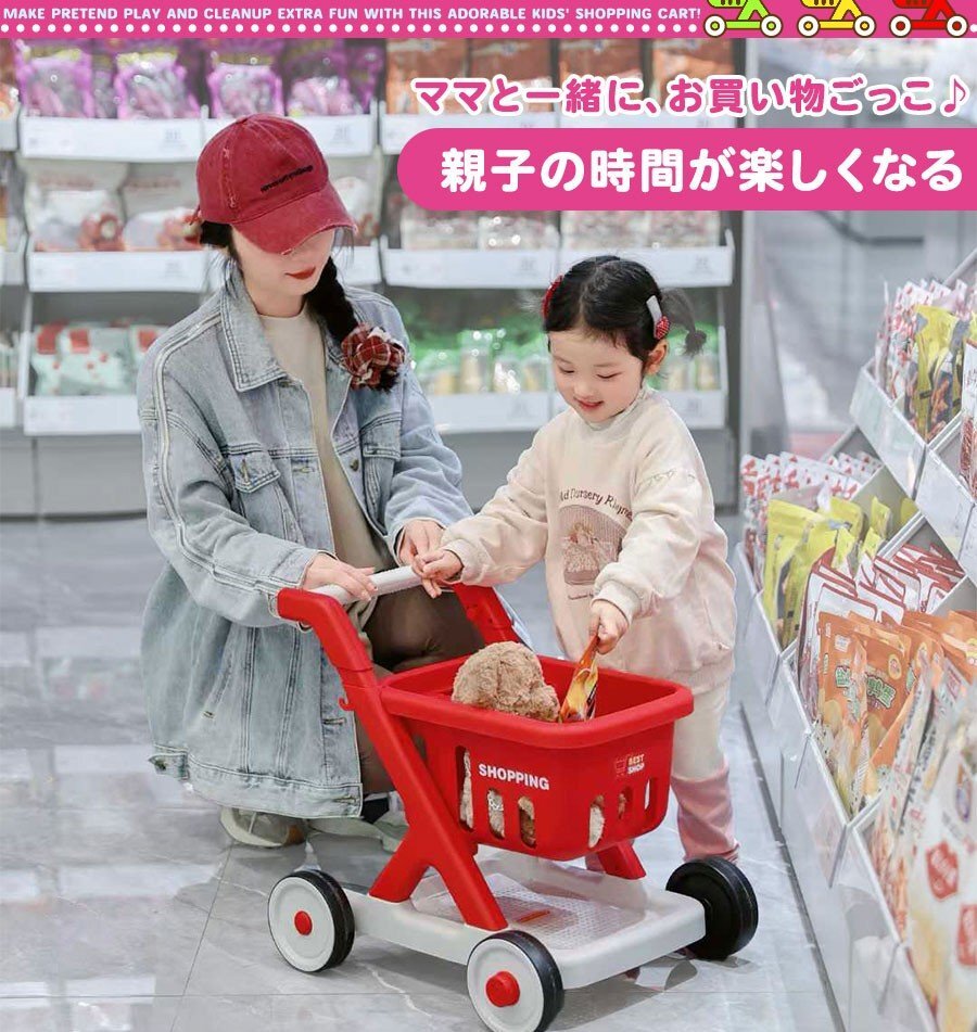 ※『ショッピングカート』のみの販売になります。画像にあるぬいぐるみ・食べ物玩具などは演出上のもので付属されていません。