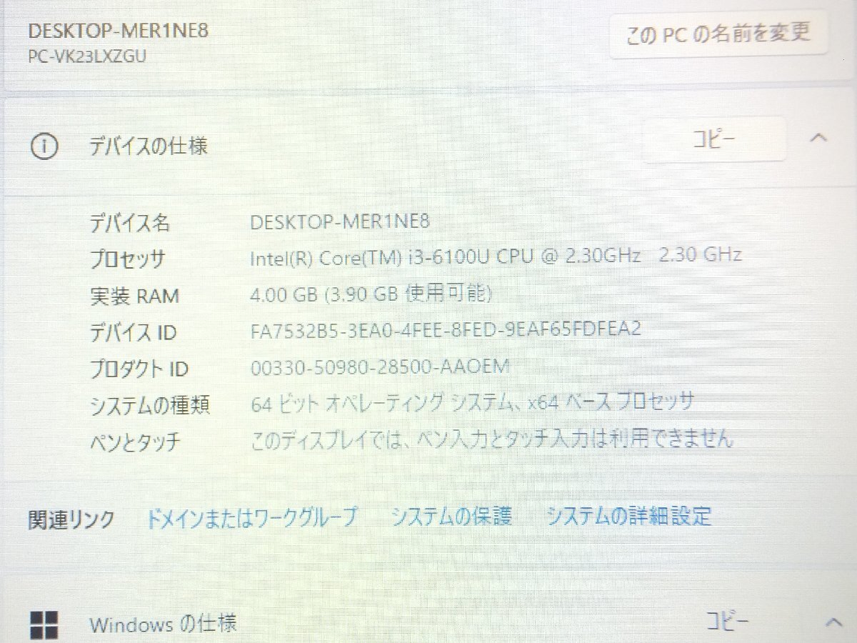| 商品説明 | NEC■VersaPro VK23LX-U(PC-VK23LXZGU)■Core i3-6100U(第6世代)■4GB(メモリ)■500GB(SATA)■DVD-ROM■15.6型■1366×768■Office/有線■Windows11設定済みノートパソコン■NEC■(21) ■動作に問題ありませんが、 無線LANありませんので、有線LANにてご使用ください。 【OS】 Windows11-Professional 【CPU】 Core i3-6100U 2.30GHz 【メモリ】 4GB 【ストレージ】 500GB(SATA) 【ドライブ】 DVD-ROM 【液晶サイズ】 15.6型 【解像度】 1366×768 【有線LAN】 正常動作確認済。 【Office】 Web版Microsoft Office(Microsoft 365 for the web) マクロ等の機能はやや制限されますが、マイクロソフト正式のソフトが使用できます。 使用条件はネットワーク常時接続とMicrosoft アカウント(無料で作成可能)となります。 【Office】 LibreOffice マイクロソフトOfficeと高い互換性があり、オフラインでも使用可能です。 【バッテリー】 保証対象外で詳細は確認していませんが、バッテリーのみで起動できました。 【Bluetooth】 なし 【Webカメラ】 なし 【LTE】 なし 【状態】 ■動作に問題ありませんが天板に小キズ、汚れがあります。 ■パームレスト周辺部に汚れ、小キズが数ヵ所あります。 【付属品】 ACアダプター ■Web版Microsoft Office(Microsoft 365 for the web) やLibreOfficeの操作説明はいたしませんのでご了承ください。 (ネット検索でかなり沢山説明方法が掲載されていますので、お調べください) ![]() |