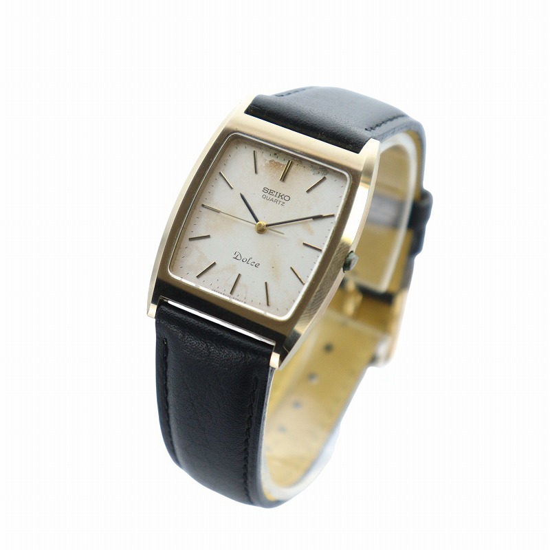 セイコー SEIKO ドルチェ 腕時計 ウォッチ クォーツ スクエア 白文字盤 ロゴ レザーベルト ゴールド色 6030-5320 ■GY18 /MQ メンズ