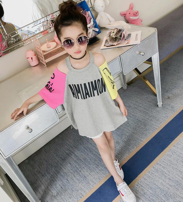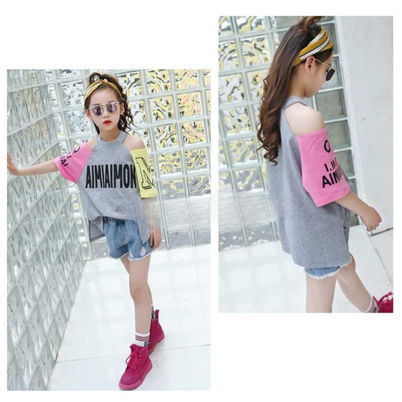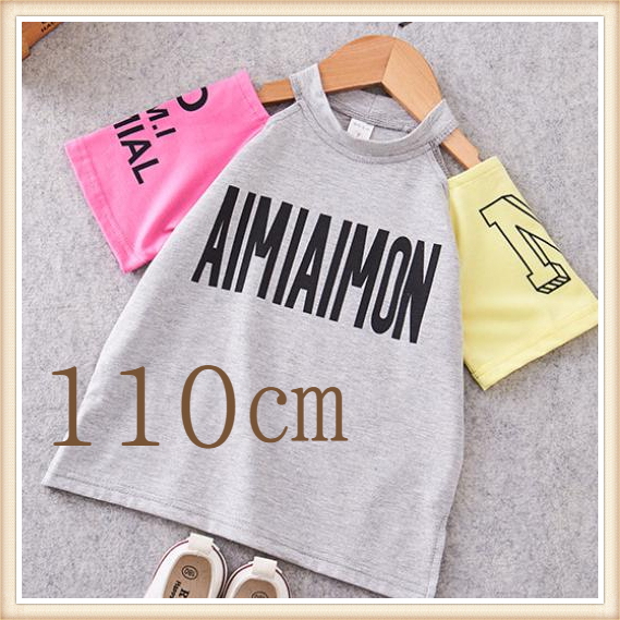 110㎝ 半袖 キッズ Tシャツ 肩出し カットソー グレー 子供服 トップス