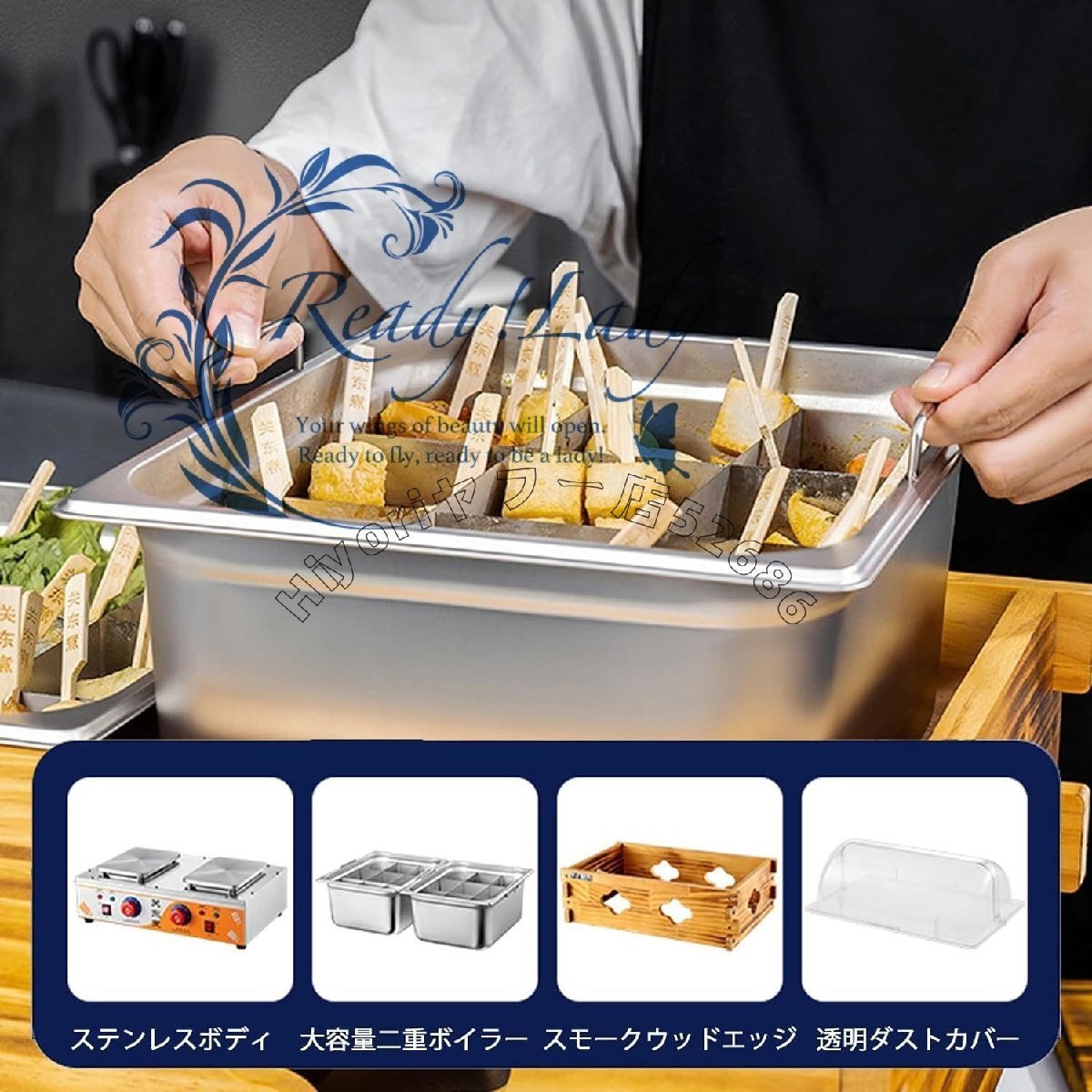【耐久性】おでん鍋はステンレスとスモークウッドで作られています。内鍋は耐久性が高く、硬度が高く、耐摩耗性に優れています。長時間の高温環境下での作業でも変形せず、丈夫です。本格的なおでんの味に仕上がります。