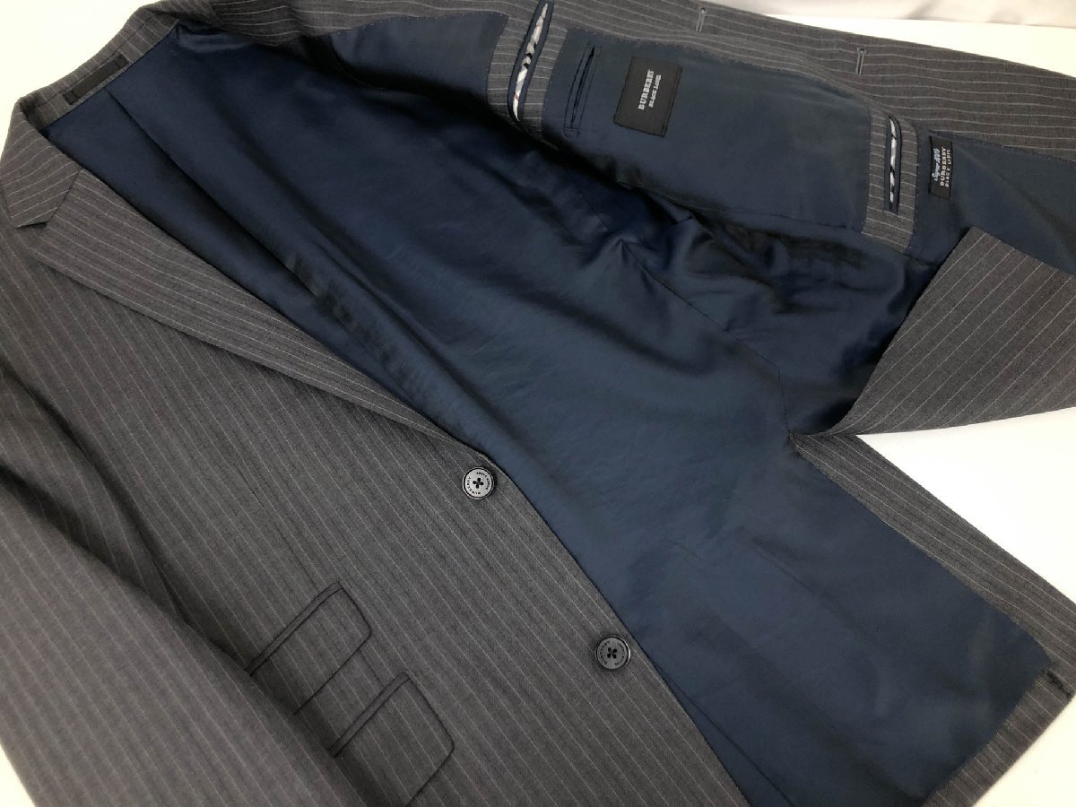 超美品【バーバリーブラックレーベル】 Super100's シングル2ボタンスーツ (メンズ) size38L 灰系 ストライプ柄 BMD17-705-07◇33RMS2163◇