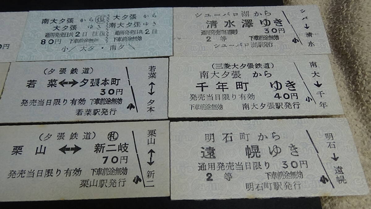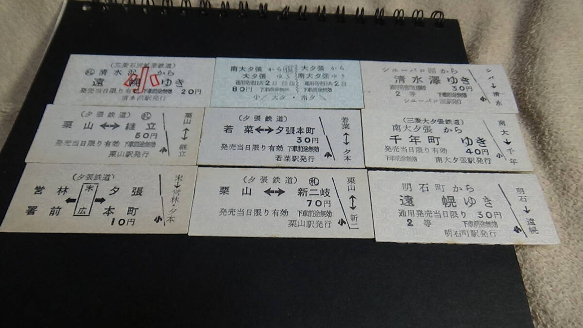 三菱大夕張鉄道・夕張鉄道線の切符。 B型 硬券 往復乗車券など9種9枚。 本券はコレクション用です、実際に使用することは出来ません。 廃札券。 切符に目立つような折れ・スジ等は無いようですが、経年によると思われる劣化、日焼け、ソリ等が認められる場合も有りますので、必ず画像にてご判断をお願い致します。 ご入札に際して画像を良く、ご覧頂き十分考慮の上、慎重に入札をお願い致します。 入札に辺り、自己紹介欄をご一読お願い致します。 現状渡しです。 ノ-クレ-ムでお願いを致します。 ※注意 ●尚、商品は厚紙にて保護の上、梱包を致します。 ●普通郵便・スマ-トレタ-便の場合、不着等の郵送事故の場合でも落札頂きました商品の保証は出来ませんので、特定記録郵便(追跡有り・保証なし)・レタ-パック(追跡有り・保証なし)又は簡易書留(追跡有り・保証有り)をお勧め致しますので、ご精算時にお申し付け下さい。 ●また、おまとめ等で一定金額以上の落札金額になった場合は、落札者様が普通郵便ご希望の場合でも、 特定記録郵便、又は保障の出来る発送方法にてご案内をさせて頂く事も有りますのでご了承頂いた上で、 慎重にご入札下さい。 ●●落札者様へのお願い●● ●ヤフ-の仕様が変わり、落札者様のIDが表示されなくなりましたので、落札後は速やかにご連絡を頂きます様、 ご協力をお願い致します。