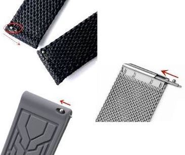 横長楕円形の切り込みがあるバンドに適応いたします。