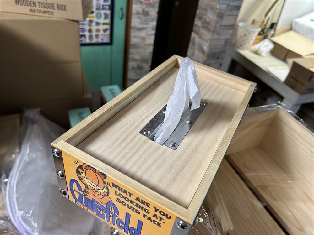 【212593】木製ティッシュボックス縁にガルバナイズのプレートをつける事で、ガレージライクなルックスに!ティッシュだけでなく工具や、プランターボックスとしても、使えます!素材:木&スチールサイズ:H8.3×W28×D15.2cm