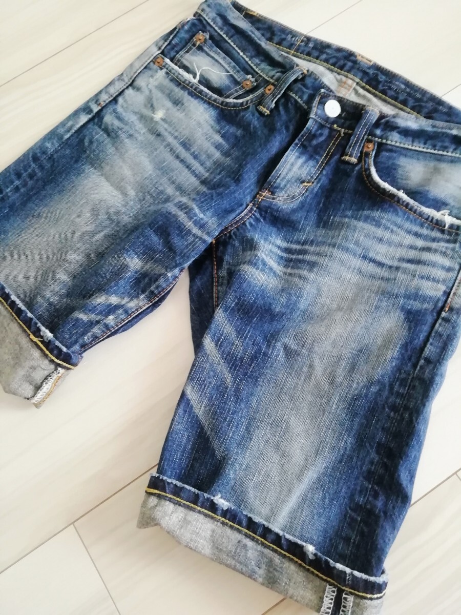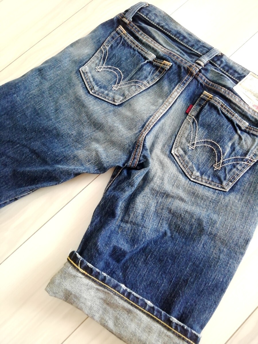 古着で好みの色で生地も柔らかく気に入って購入しましたが股上が当方には短いので出品