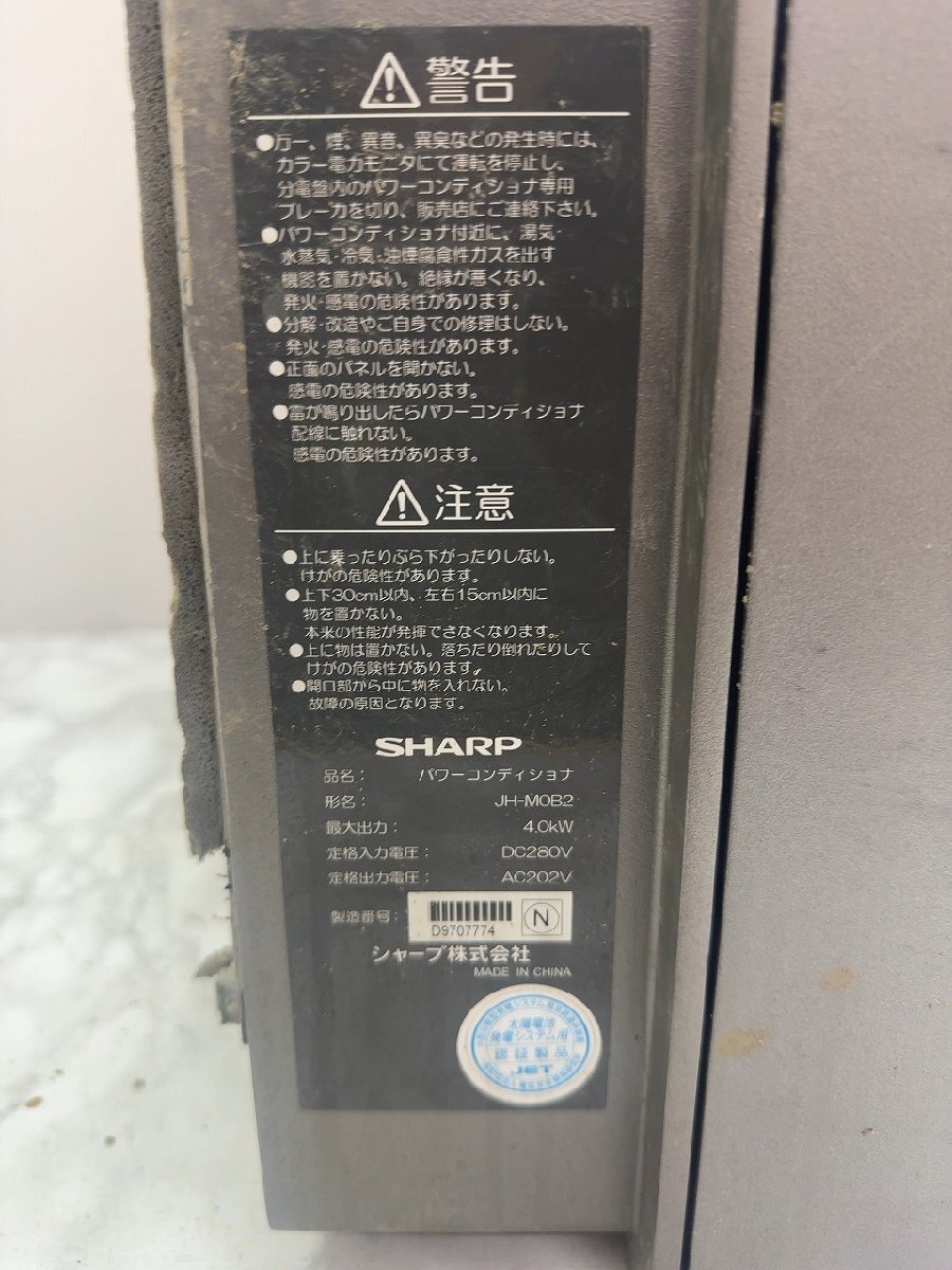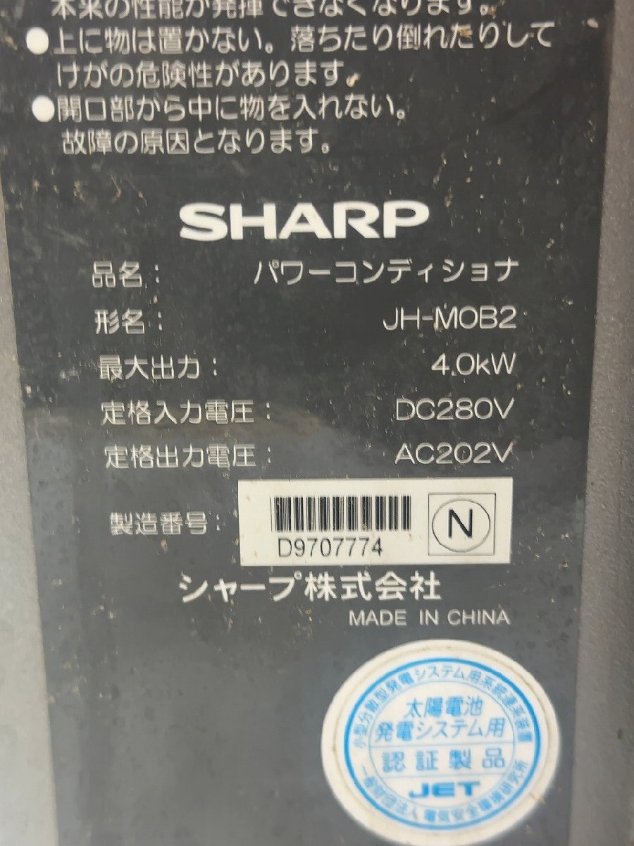 ♪【シャープ 太陽光発電 パワーコンディショナ JH-M0B2 (屋外・屋内設置兼用)発電機 変圧器 充電器 ソーラーパネル太陽電池】OK20338