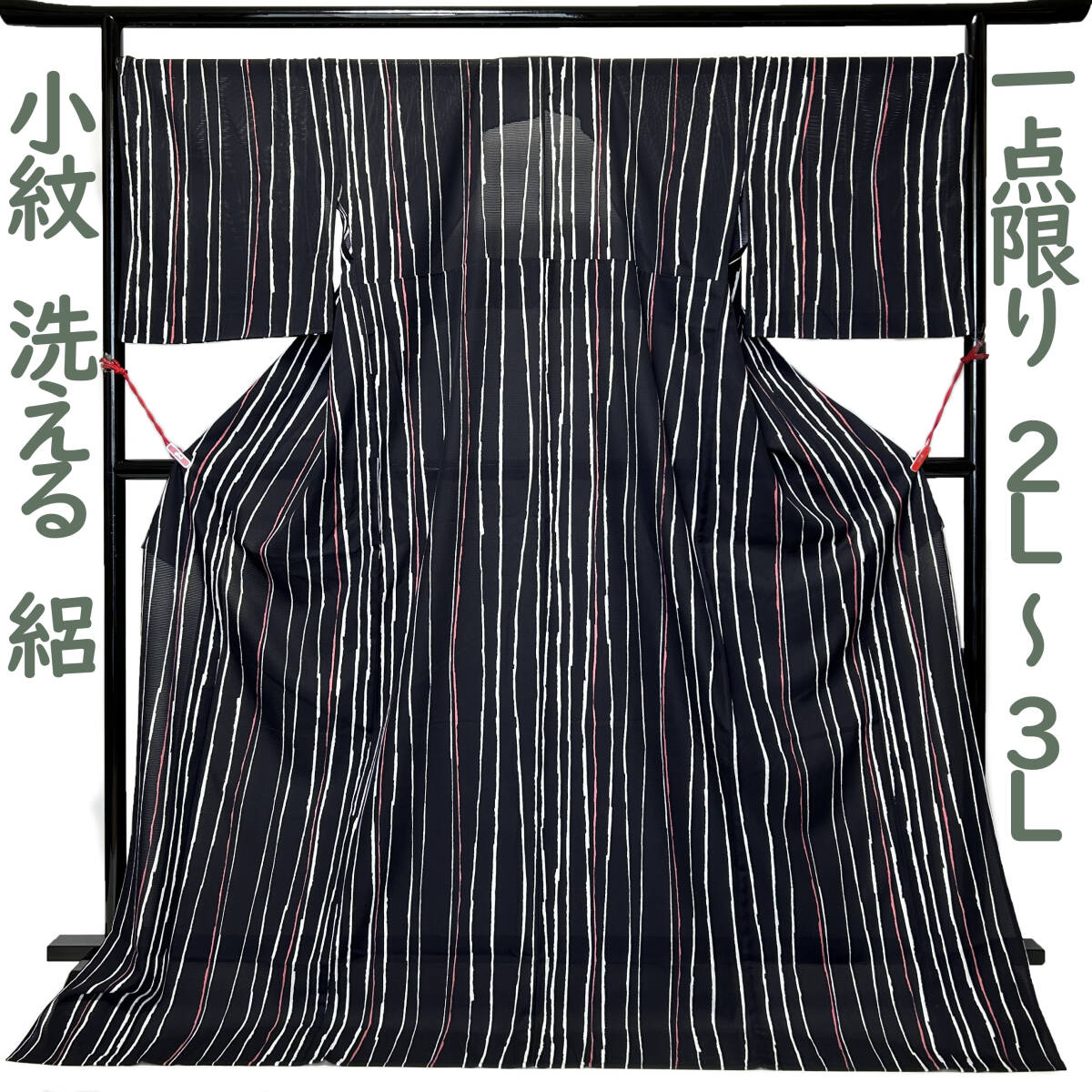 着物 単衣 絽 盛夏 小紋 洗える着物 カジュアル ブラック 綺麗 中古 仕立て上り 限定1点 2L~3Lサイズ MWR-No.217 14082025 マダム 和装