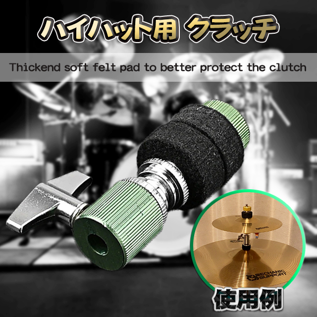 ハイハット用クラッチは、クラッチをより良く保護するために厚みのあるフェルトパッドを備えています。また、既存のハイハットシンバルスタンド/アームの上に 2 つ目のシンバルを追加することもできます。