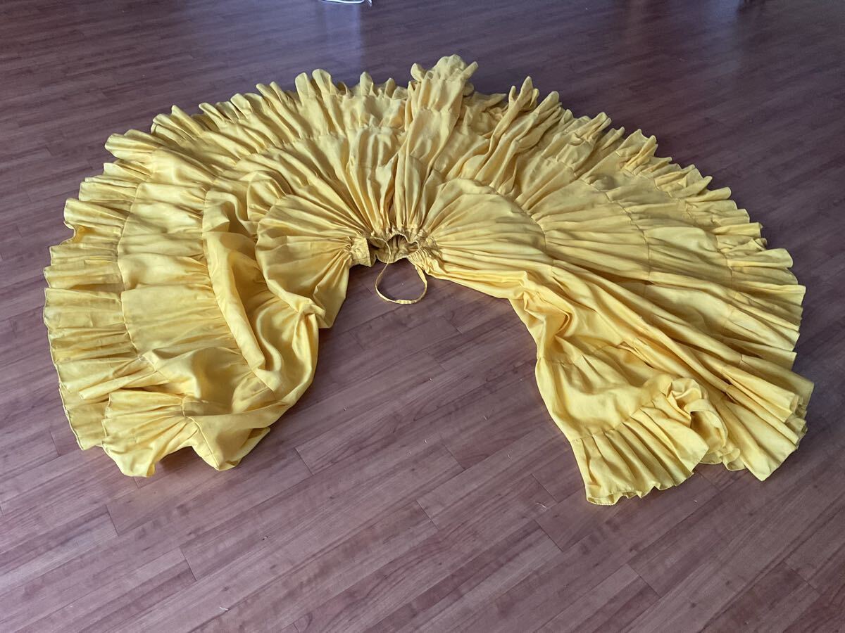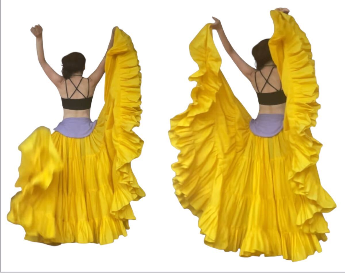 #ジプシースカート #1000ヤード #ベリーダンス衣装 #ジプシーダンス #民族衣装 #厚手コットン #ダンス衣装 #ステージ衣装 #ヒップスカーフ #黄色スカート #舞台映え #ダンスファッション #大きく広がるスカート