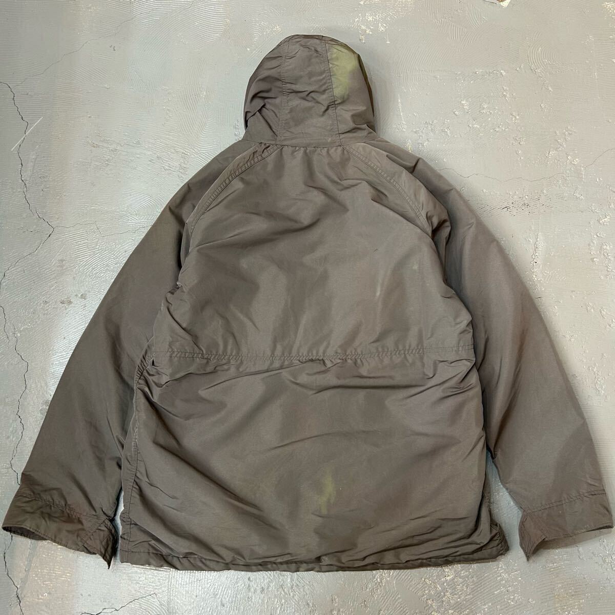 内タグ一部欠損、腹部と袖口に汚れ、フードとフロントとバックの所々に色抜けがみられます。