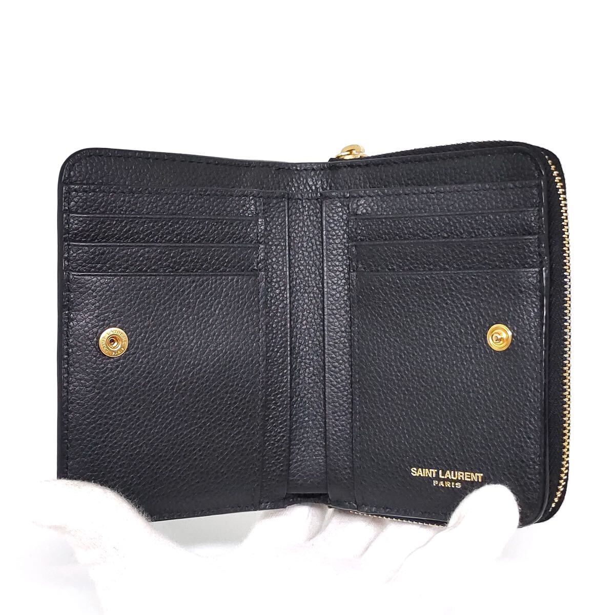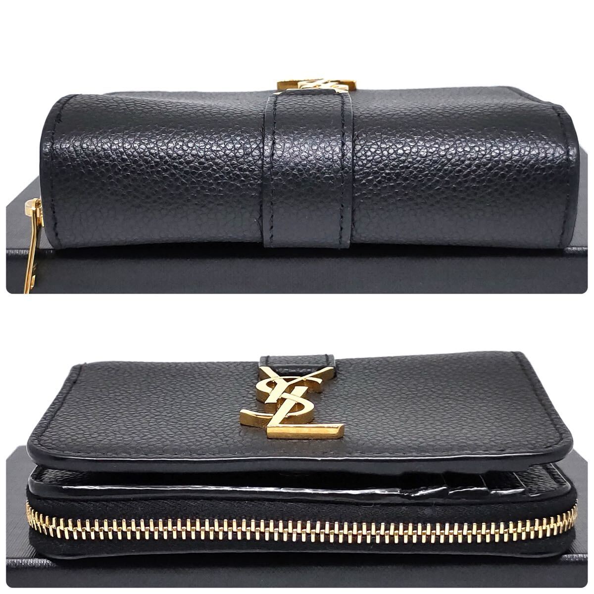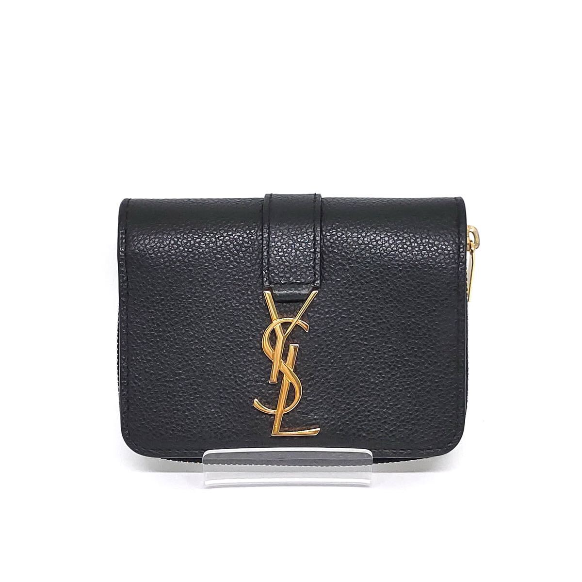 美品 SAINT LAURENT YSL サンローラン 二つ折り財布 YSL モノグラム レザー ブラック キャビアスキン コンパクトウォレット