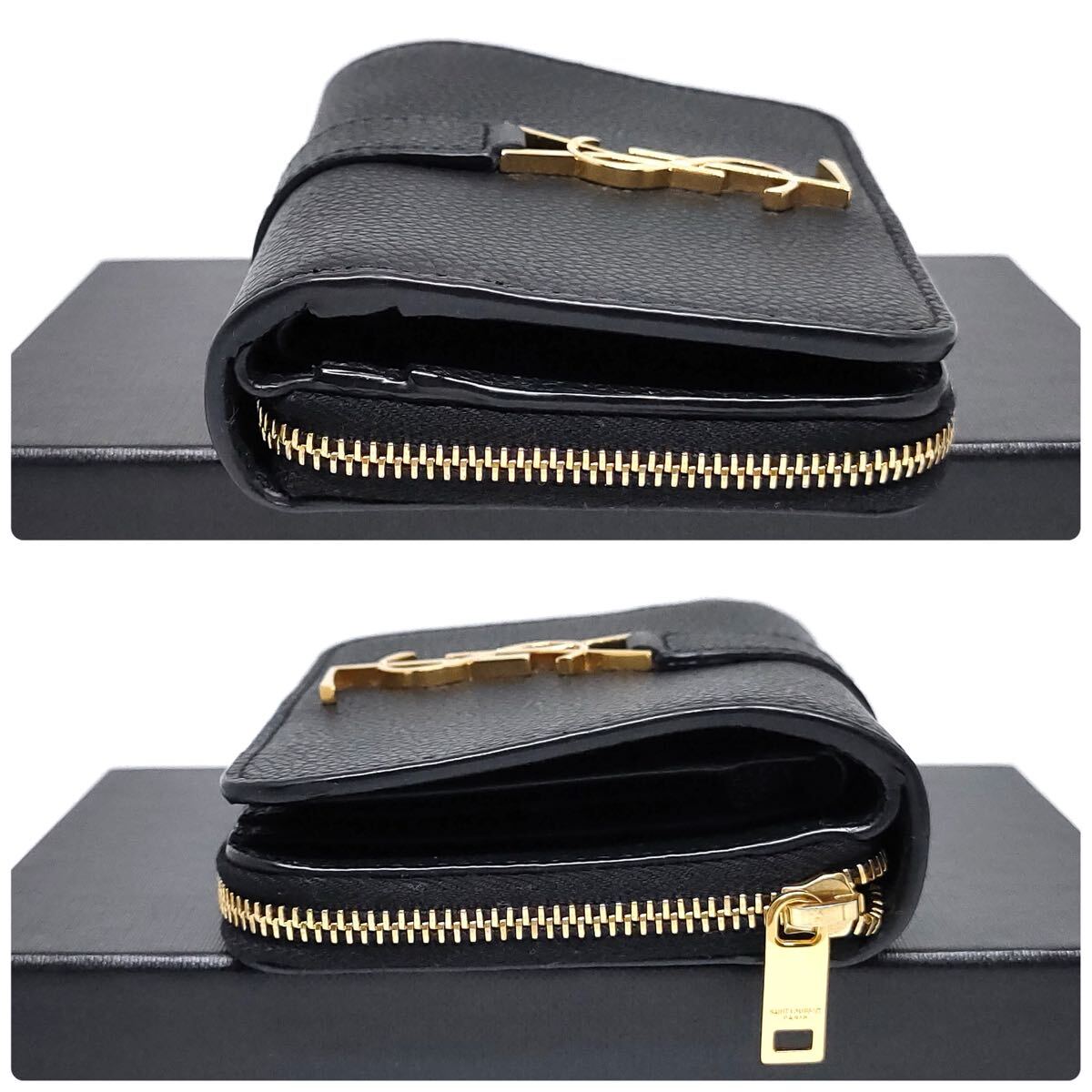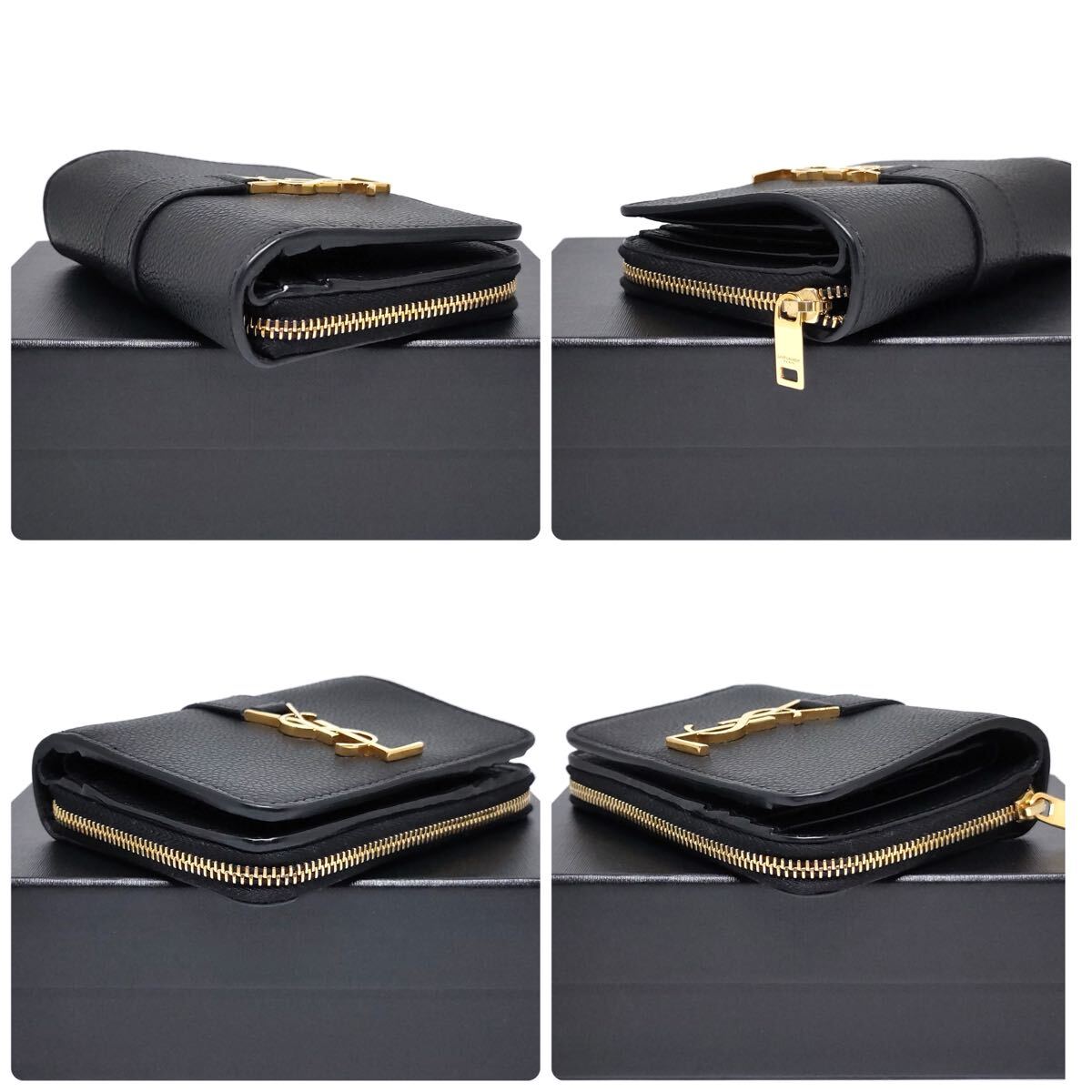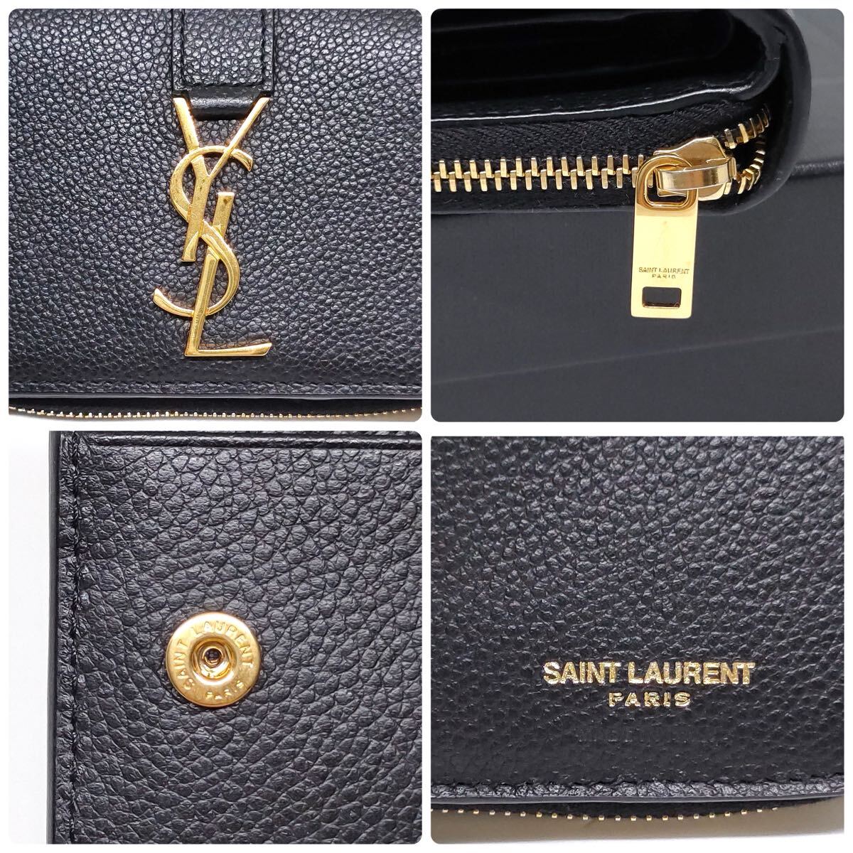 美品 SAINT LAURENT YSL サンローラン 二つ折り財布 YSL モノグラム レザー ブラック キャビアスキン コンパクトウォレット