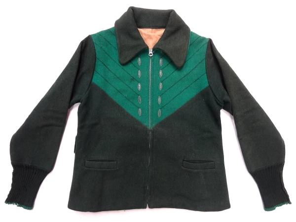 ビンテージ 希少 40S ウール ウィンター スキー スポーツ ジャケット ブルゾン 緑 2トーン 扇タロン レア 針抜き リブ長 グリーン S サイズ