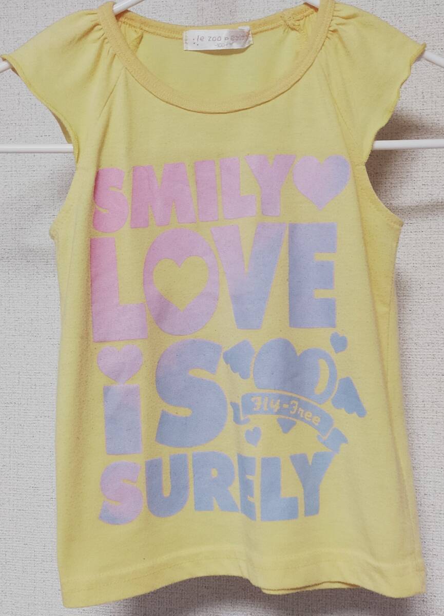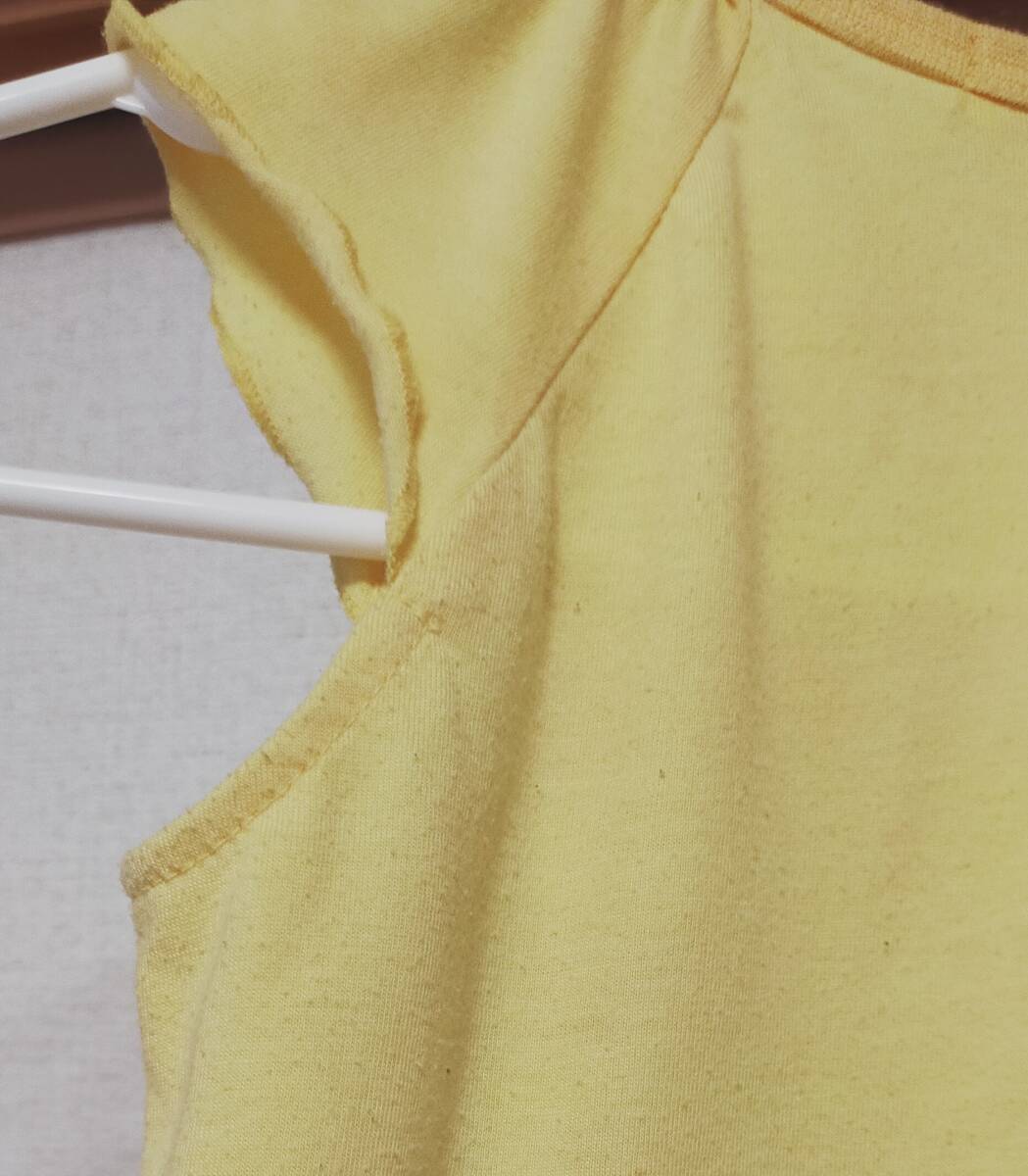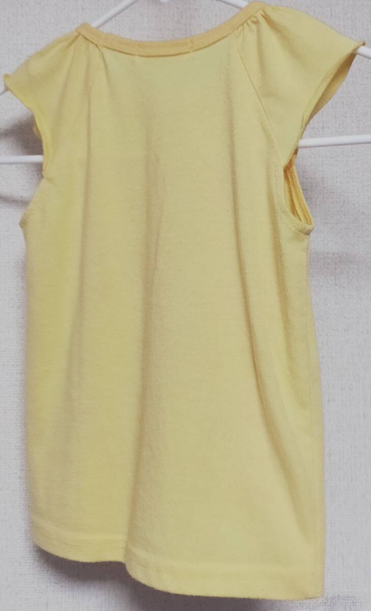 ◎半袖Tシャツ(黄)100サイズ:肩のフリルがアクセント。少し毛羽立ちあり。