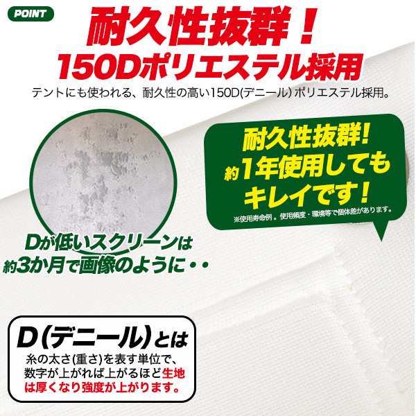 テントにも使われる、耐久性の高い150D(デニール)ポリエステル採用。