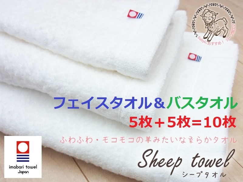 新品 10枚 今治タオル ふかふか ホワイト シープタオル 大判 バスタオル 5枚 フェイスタオル 5枚 綿100% 白 無地 日本製