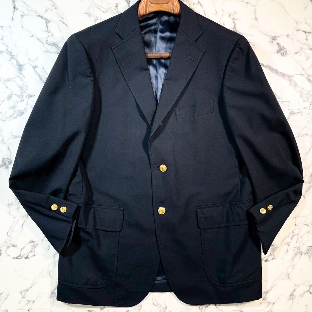 美品/紺ブレ/AB6(XL)●J.PRESS ジェイプレス ブラックネイビー ブレザー シングル 金ボタン テーラード ジャケット ウール 刻印 ビジネス
