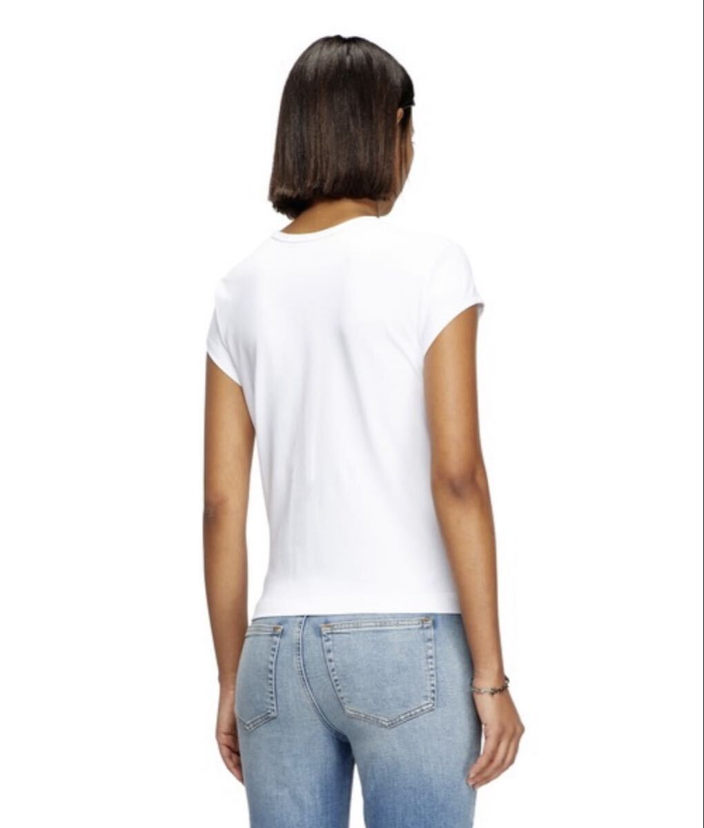 胸元にあしらわれたカットアウト仕様のオーバルDロゴが印象的なTシャツ。ストレッチコットンジャージー生地を採用していて、ボディラインに程よくフィットする仕上がりとなっています。手触りもなめらかで、着心地も良好。コンパクトなシルエットなので、シャツやカーディガン、ジャケットのインナーアイテムとしても使いやすく、一枚あると幅広いスタイリングを楽しむことができます。