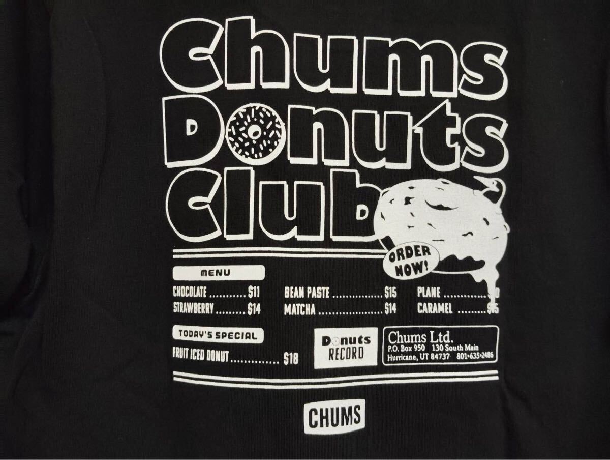 2025 Spring & Summer itemCHUMS×FREAK'S STORE毎シーズン大人気のチャムス別注Tシャツコレクション別注 バックプリント クルーネック Tシャツ ”DONUTS CLUB"