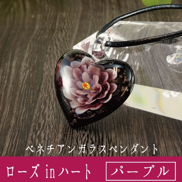 ■ベネチアン風ガラストップネックレス 新品&即決です♪ハート型!パープル ●とても綺麗です♪ベネチアンガラスペタントに本革チェーンを合わせて美しいネックレスに仕上げました。 |