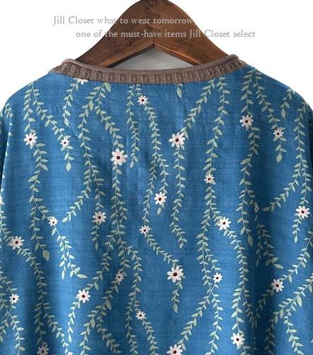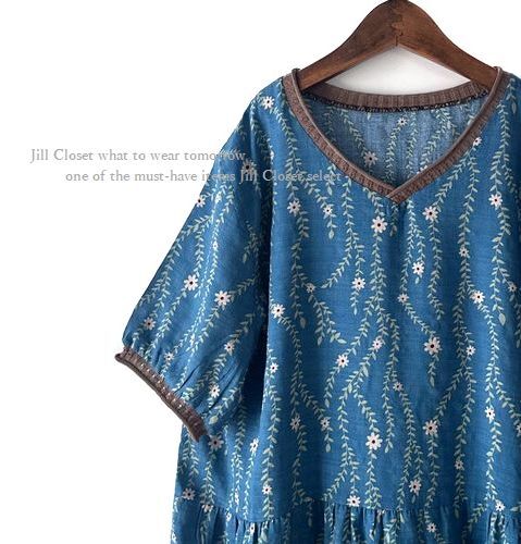 ナチュラル素材の総柄ワンピース。ウエスト切替部のギャザーでふんわりシルエットを演出。Vネックでお顔周りをすっきり魅せ・両サイドにシームポケット付き。カーディガンのインナーにも最適です。軽量でお洗濯後の乾き良くデイリーにお出かけに大活用頂けます♪