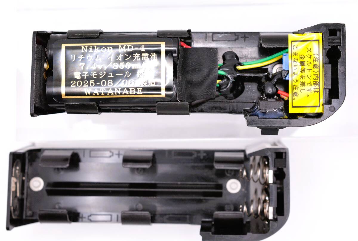 私の所有するNikon F2 MD-1のリチウムイオン充電池の交換済み電池は、