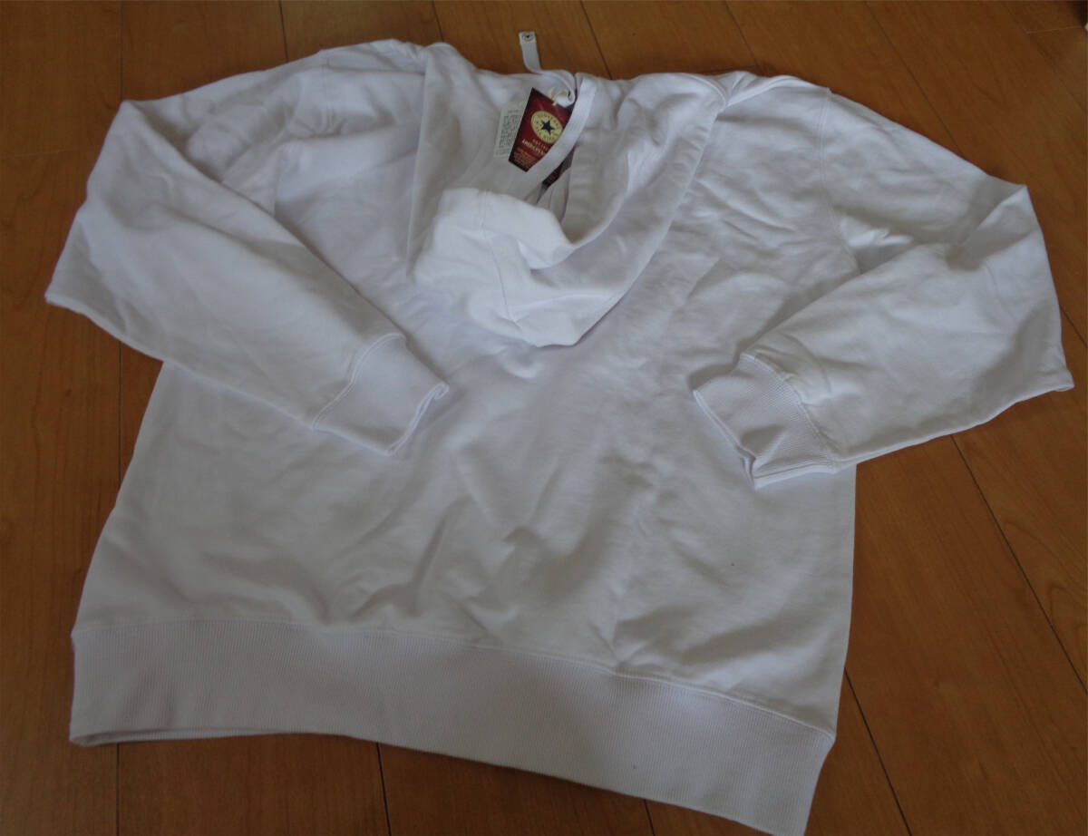サイズはLLでコンバースのパーカートレーナーになります。色は白です。