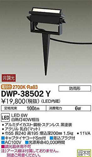 商品名 | 大光電機 DAIKO LEDアウトドアスポットライト LED内蔵 LED 6W 電球色 2700K 防雨形 電気工事必要 ブラック |