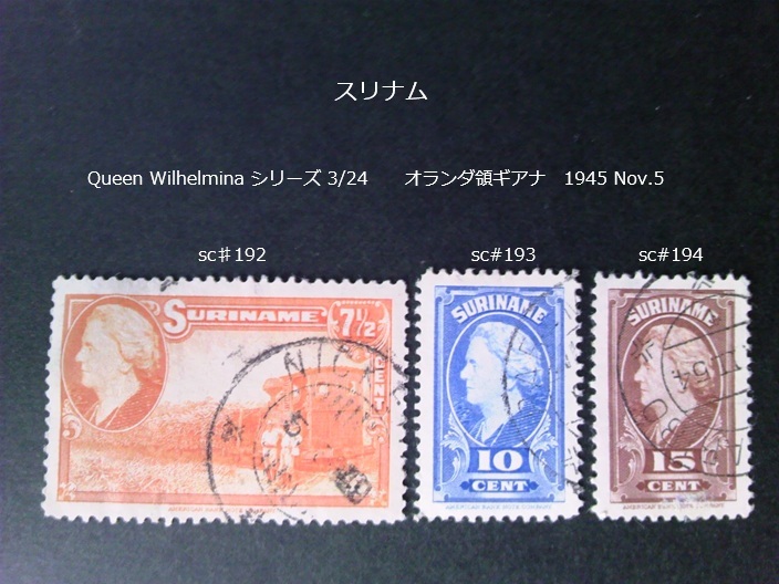 スリナム Queen Wilhelminaシリーズ 1945 sc♯192~4