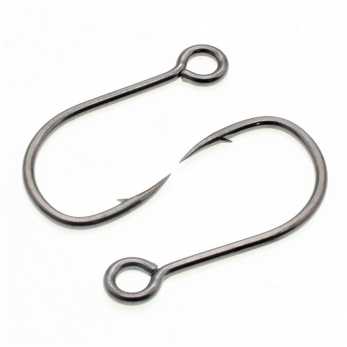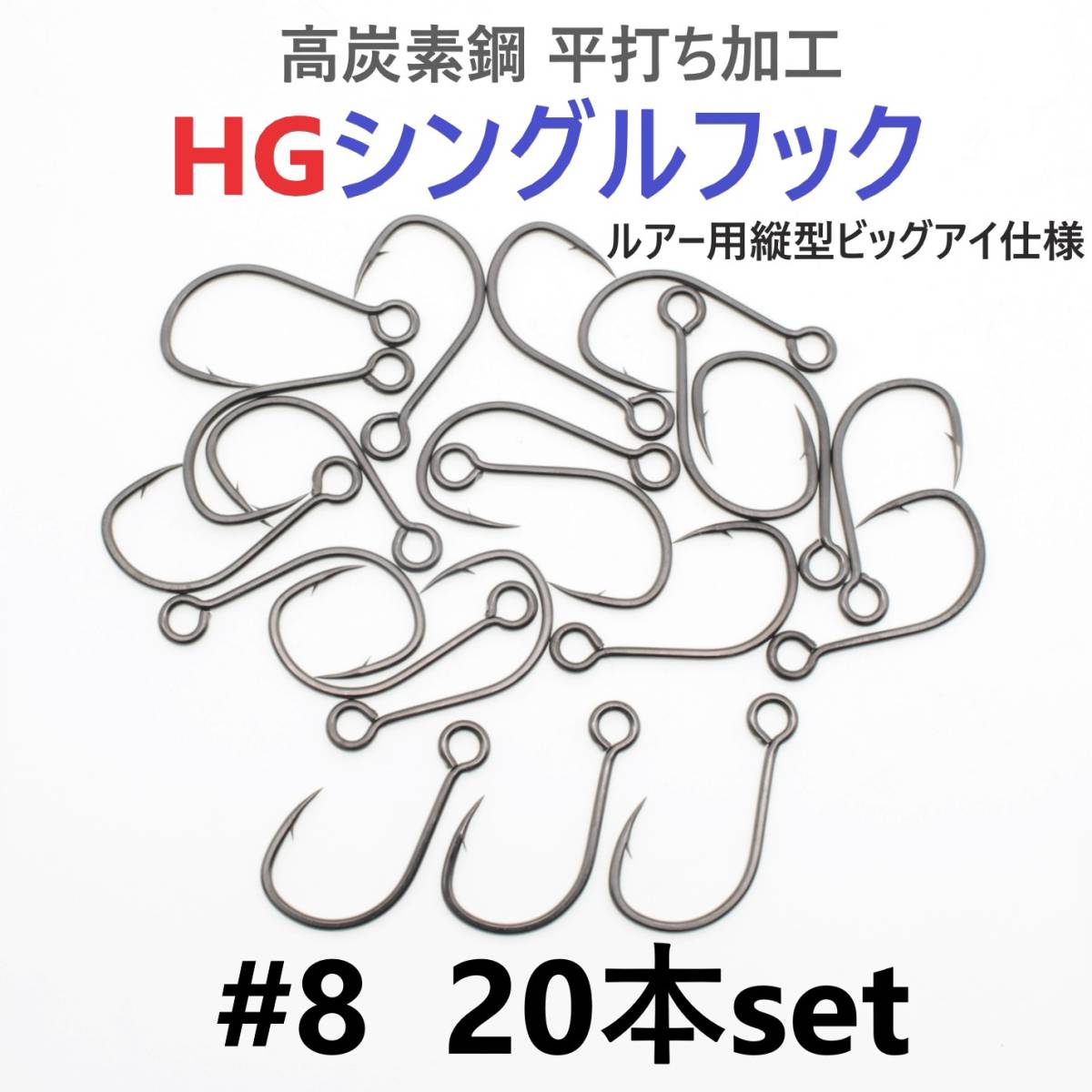 【送料無料】高炭素鋼 平打ち加工 ハイグレードシングルフック #8 20本セット ソルト対応 ブラックニッケルメッキ 縦アイ ビッグアイ仕様