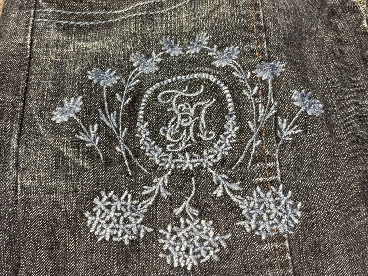 ●MARITHE FRANCOIS GIRBAUD マリテフランソワジルボー デニムスカート (S) 変形 レディース 刺繍入り
