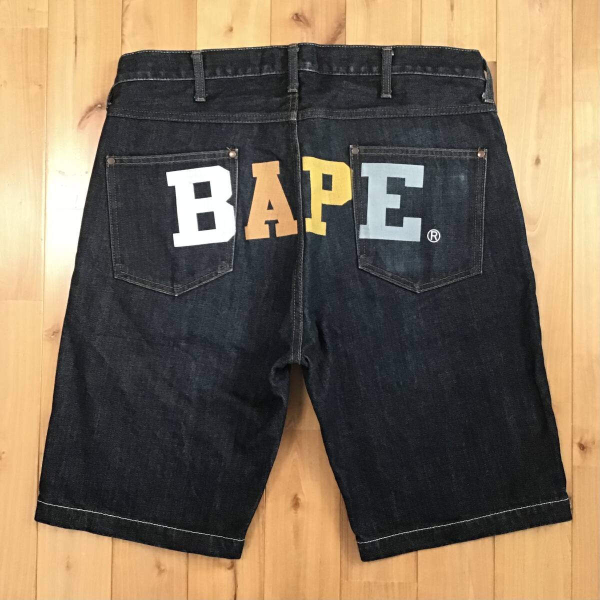 a bathing ape ★松山限定カラー★ BAPE LOGO デニムハーフパンツ Lサイズ です★