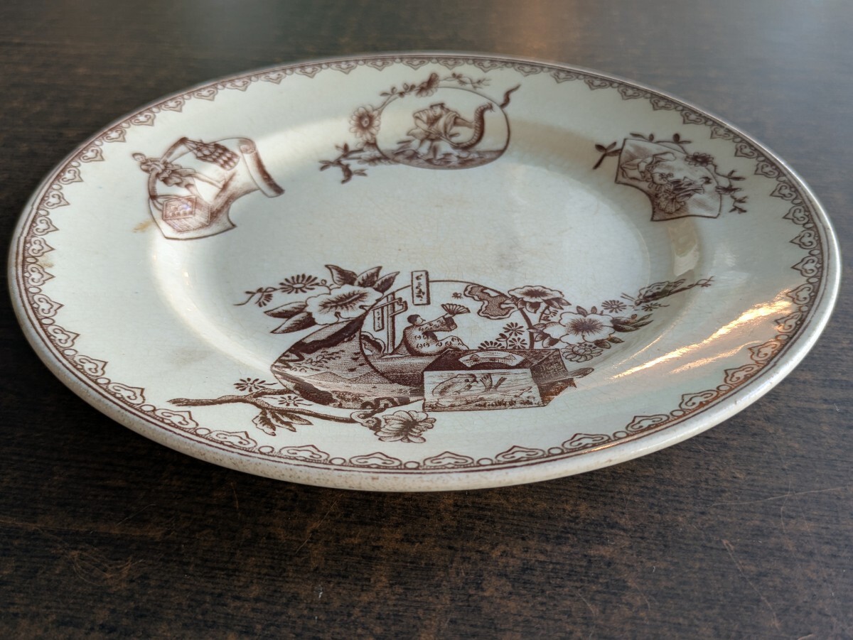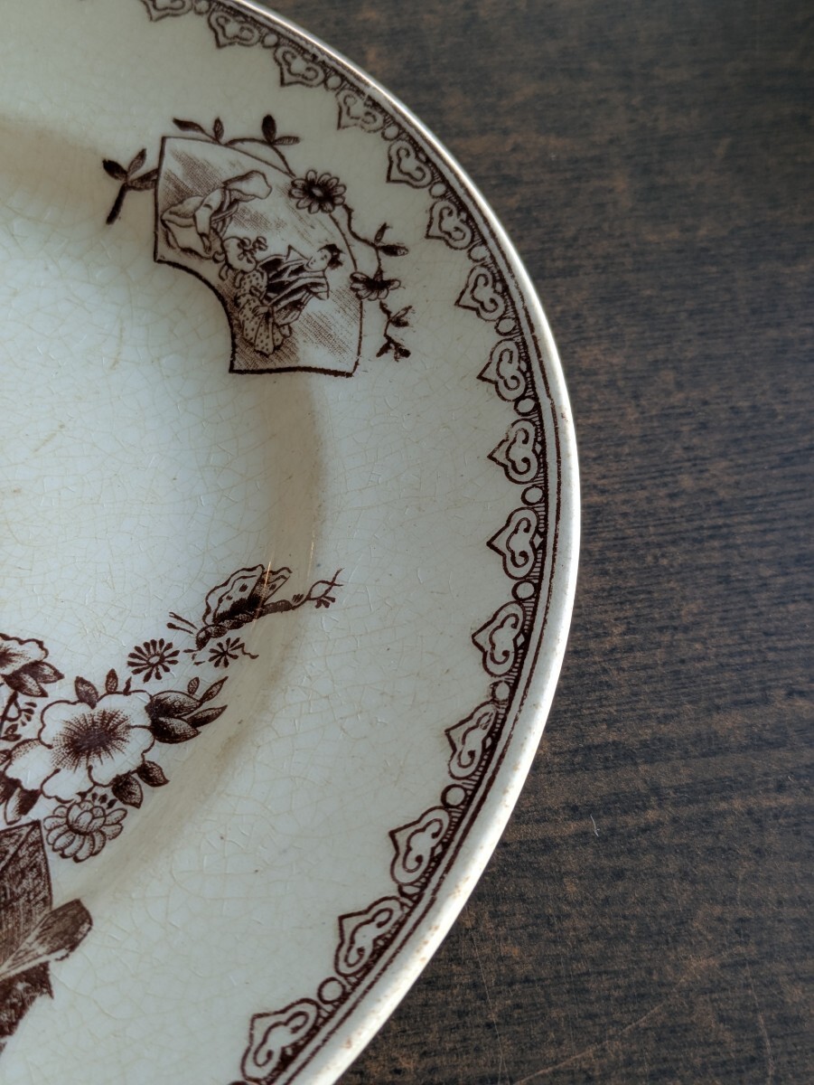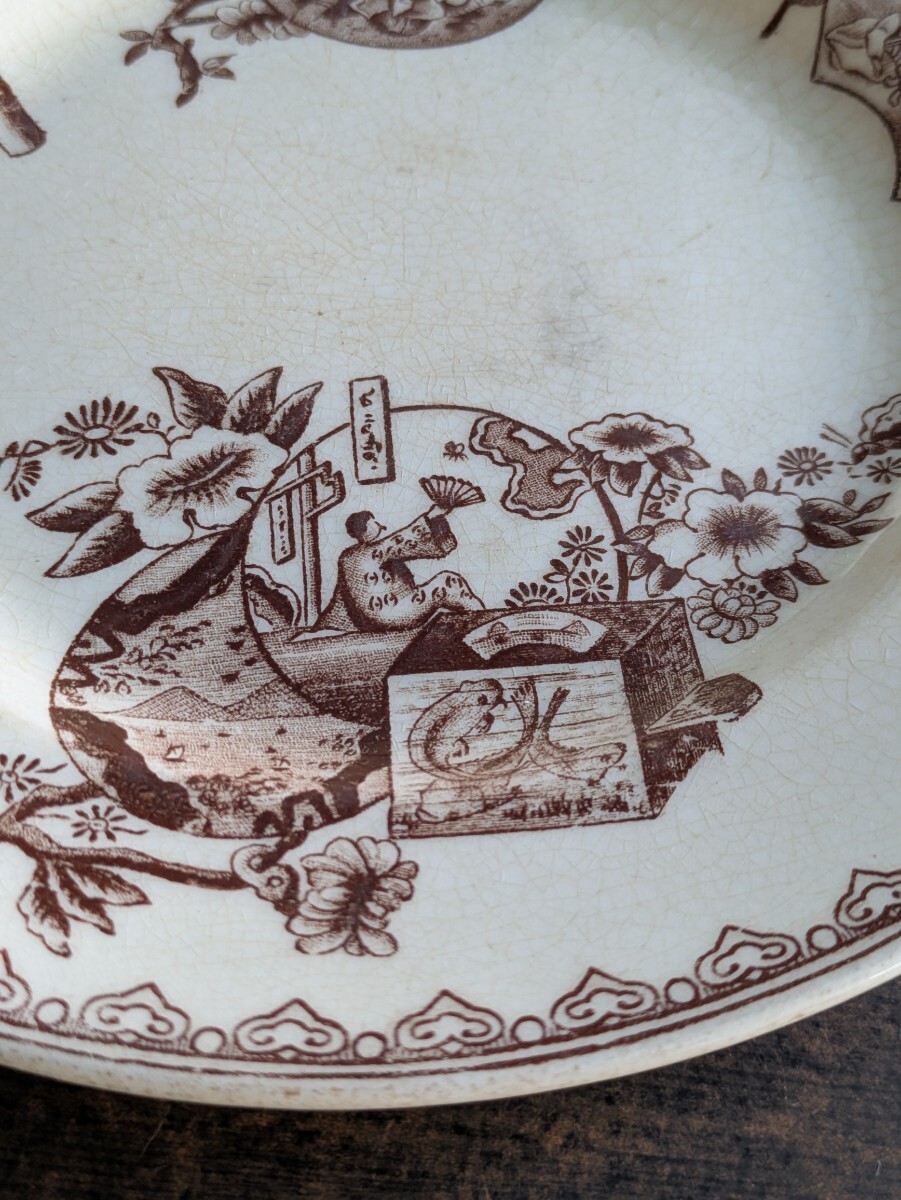 ブロカント購入 アンティーク R&Sクレールフォンテーヌ Kioto (茶色)プレート 23cm ジャポニズム 海外発送(送料3200円)